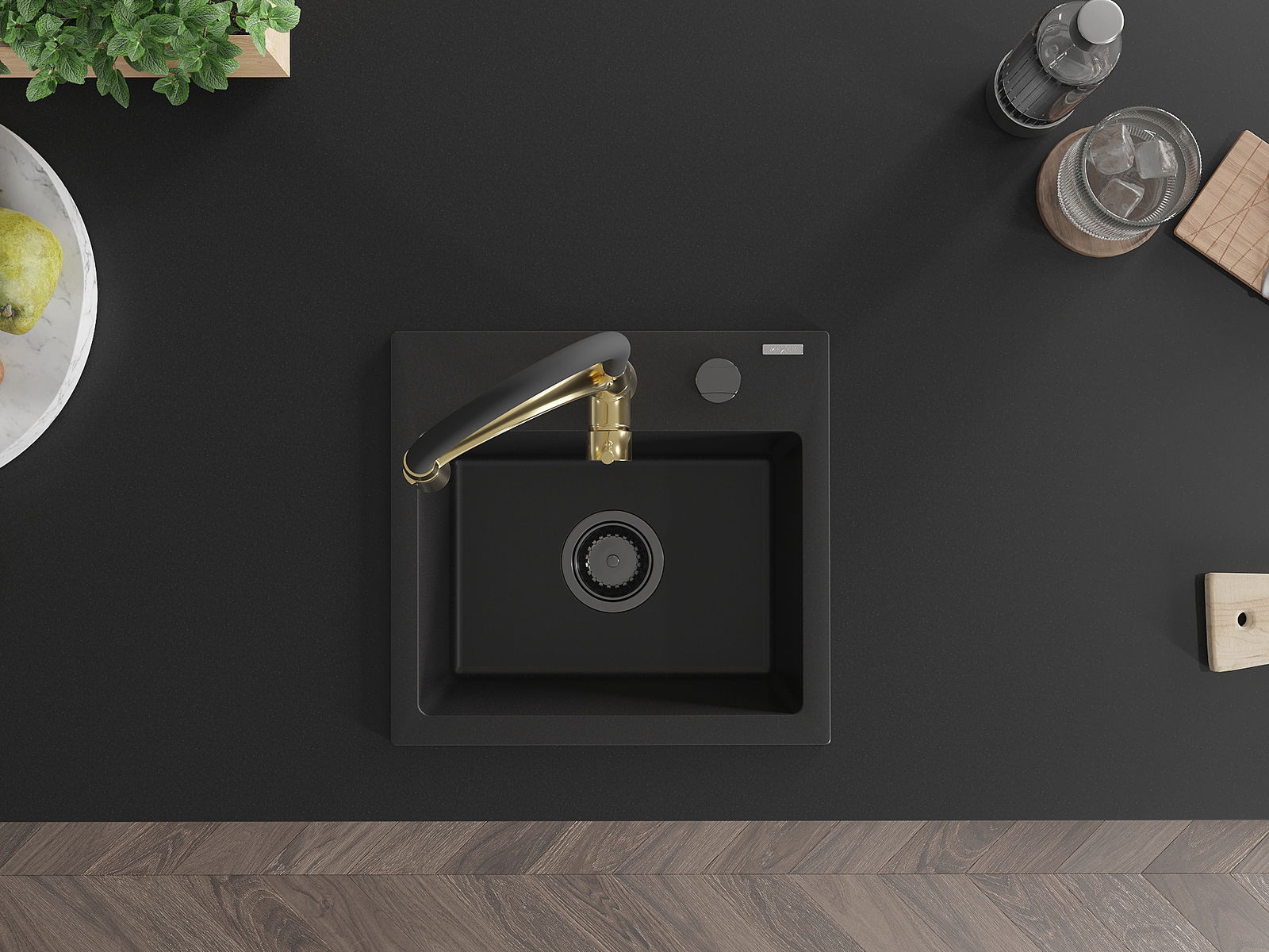 Mexen Milo chiuvetă de bucătărie din granit cu 1 cuvă cu baterie de bucătărie Aster, negru - 6505-77-73450-57-B