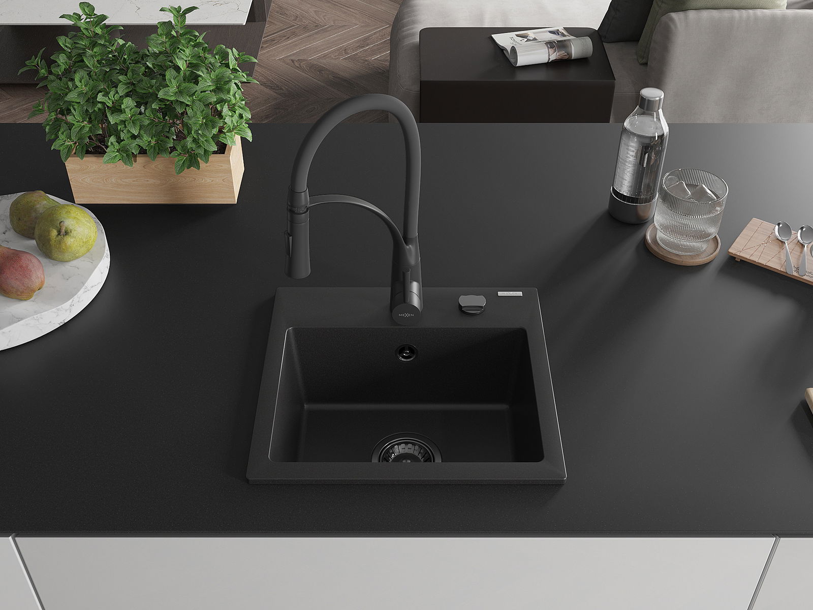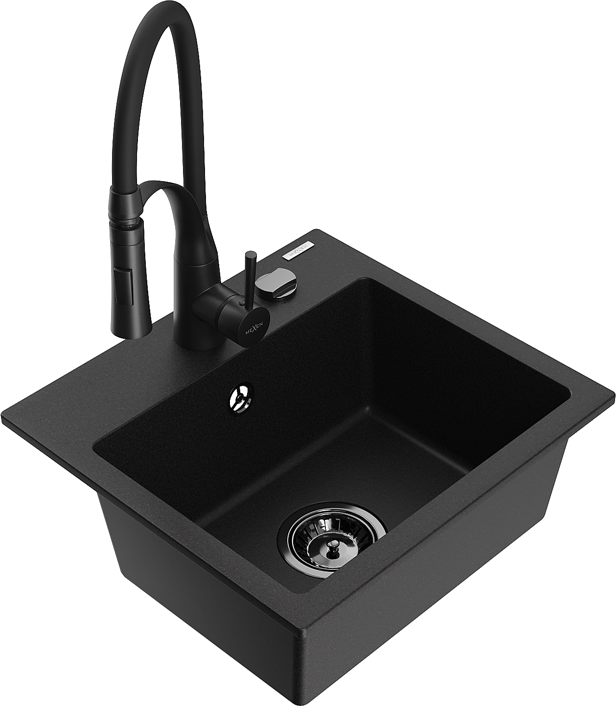 Mexen Milo chiuvetă de bucătărie din granit cu o cameră, cu baterie Aster, negru - 6505-77-73450-70-B