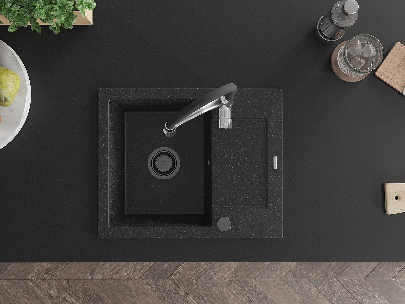 Chiuveta a fost realizată din granit de înaltă calitate. Reprezintă un complement elegant și, mai presus de toate, practic pentru orice bucătărie, indiferent de stilul acesteia. Calitatea înaltă și durabilitatea granitului asigură o utilizare de lungă durată.