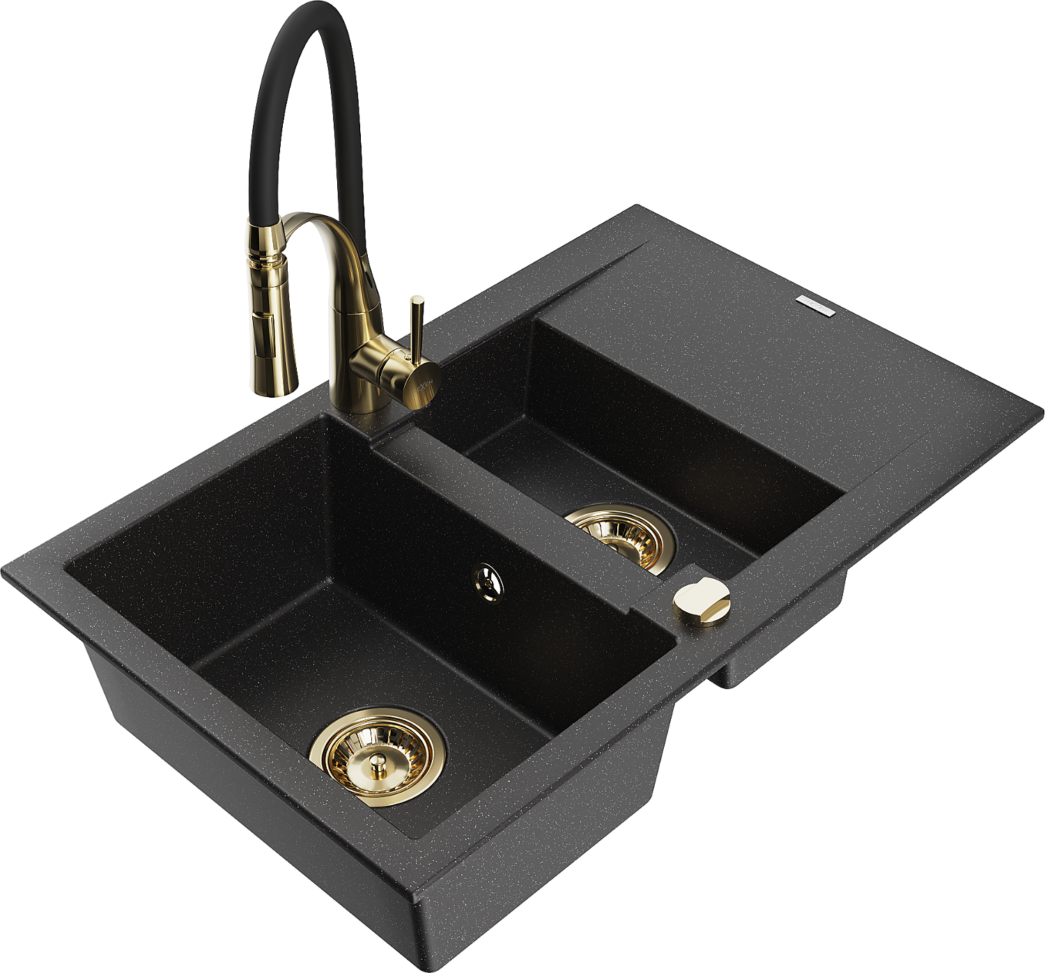 Mexen Gaspar chiuvetă de bucătărie din granit cu 1,5 compartimente cu picurător și baterie de bucătărie Aster,