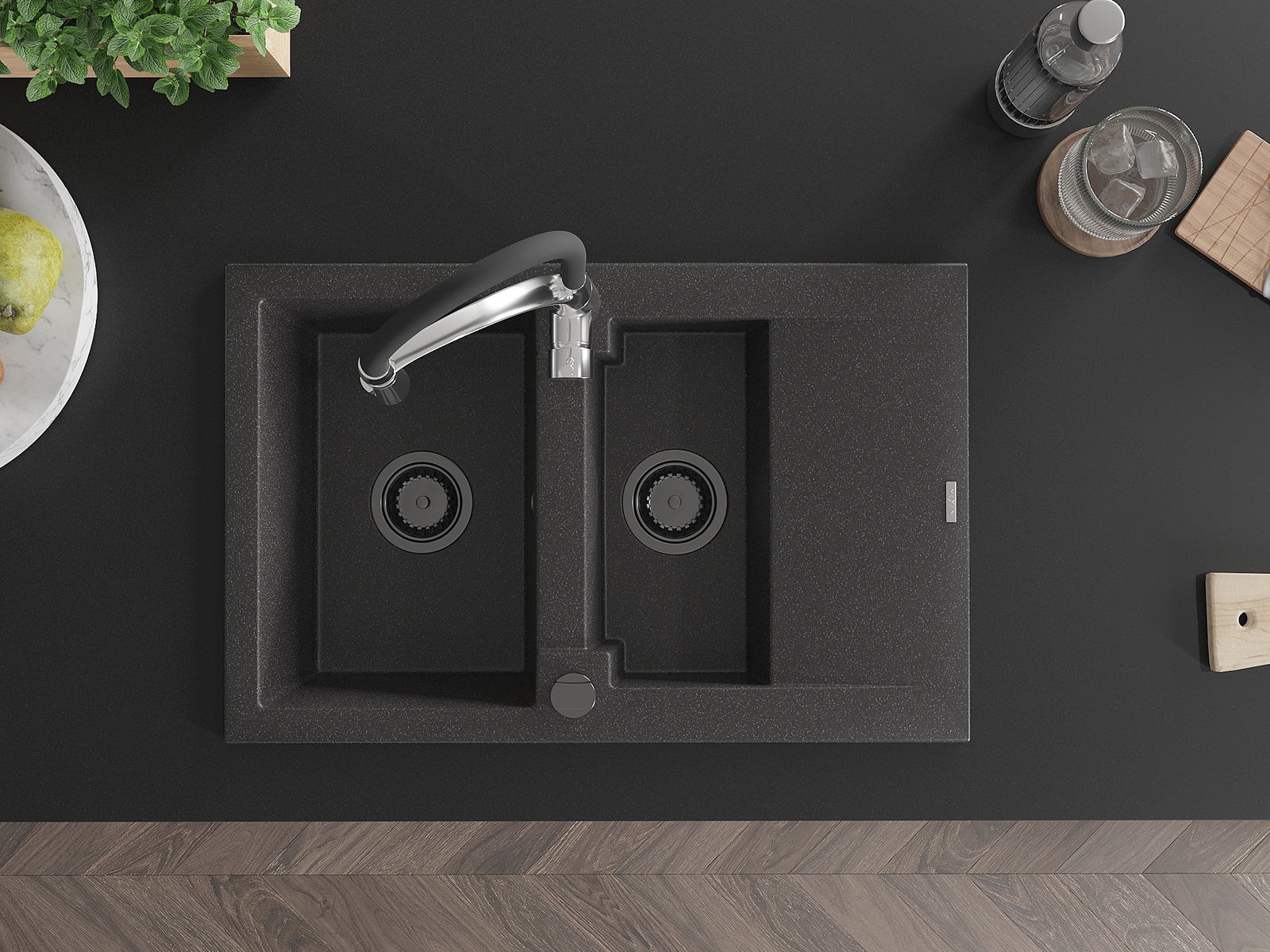 Chiuveta este confecționată din granit de înaltă calitate. Este un complement elegant și, mai ales, practic pentru fiecare bucătărie, indiferent de stilul său. Durabilitatea de înaltă calitate și granit asigură mulți ani de utilizare.