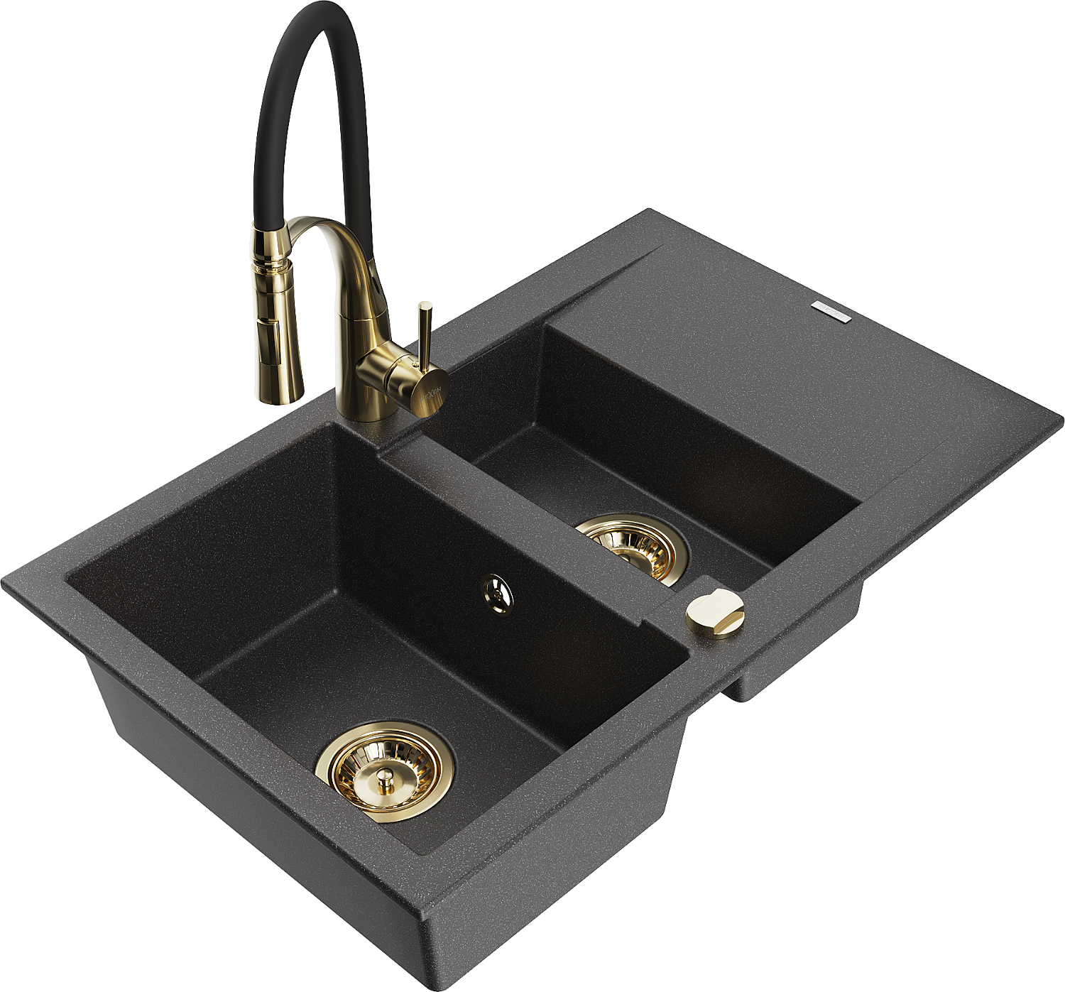 Mexen Gaspar chiuvetă granit 1,5-camere cu scurgător și baterie de bucătărie Aster, negru picat - 6507-76-73450-57-G