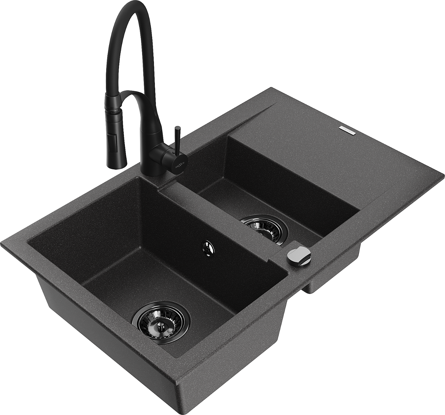Mexen Gaspar chiuvetă de bucătărie din granit 1,5 camere cu scurgător și robinet de bucătărie Aster, negru cu puncte - 6507-76-?