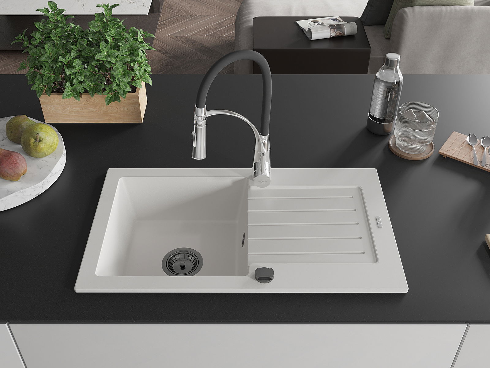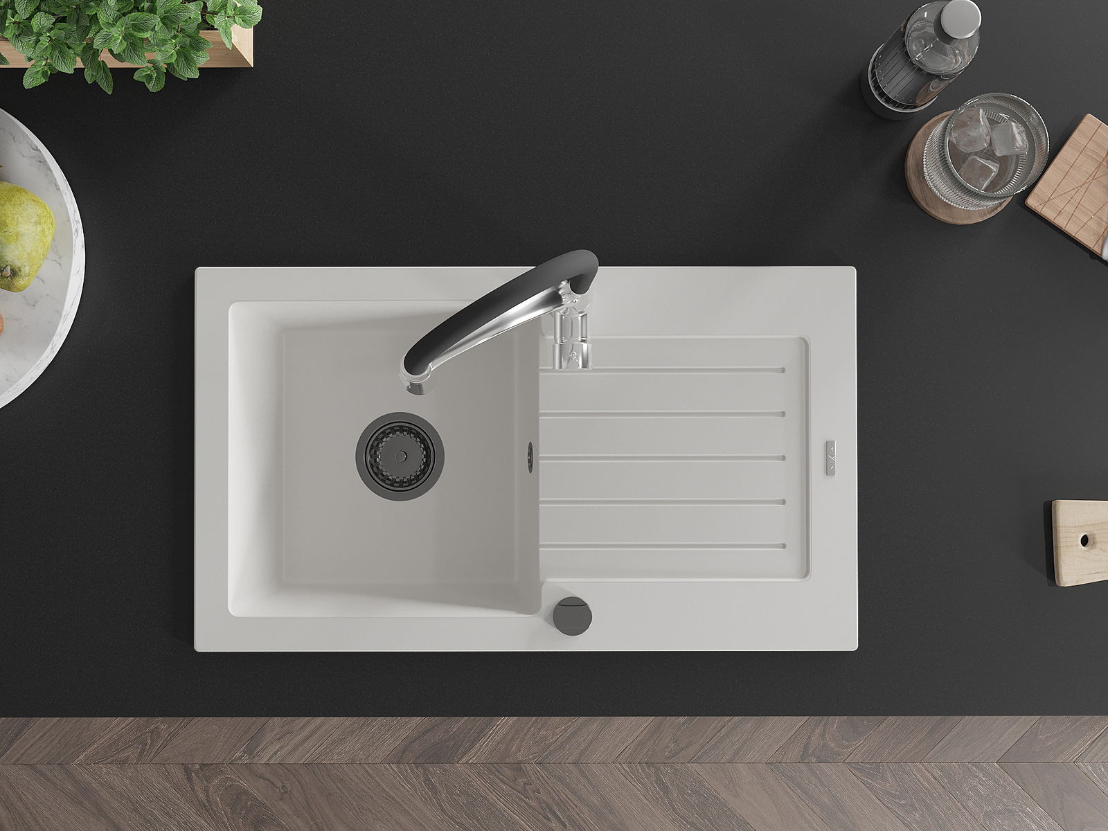 Suprafața chiuvetei este rezistentă la pete și decolorare, ceea ce o face ușor de întreținut și își păstrează culoarea pentru o perioadă lungă de utilizare. Un complet estetic și practic pentru orice bucătărie.