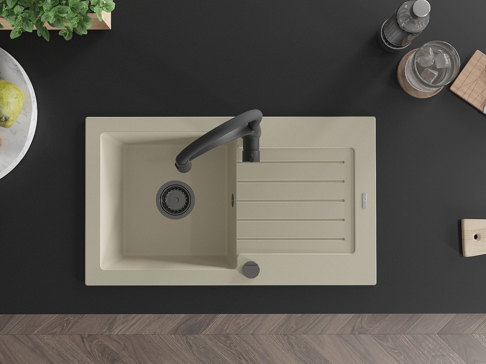Suprafața chiuvetei este rezistentă la pete și decolorare, ceea ce o face ușor de întreținut și își păstrează culoarea pentru o perioadă lungă de utilizare. Un complet estetic și practic pentru orice bucătărie.