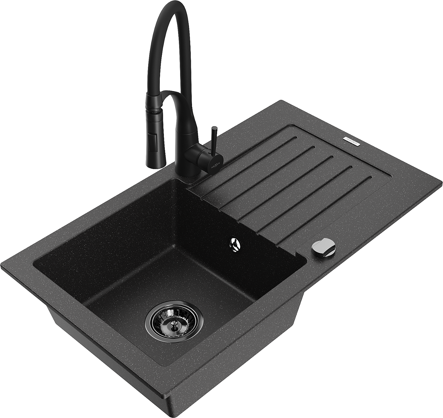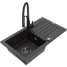 Mexen Pablo chiuvetă de granit cu 1 compartiment cu scurgător și baterie de bucătărie Aster, negru/argintiu metalic
