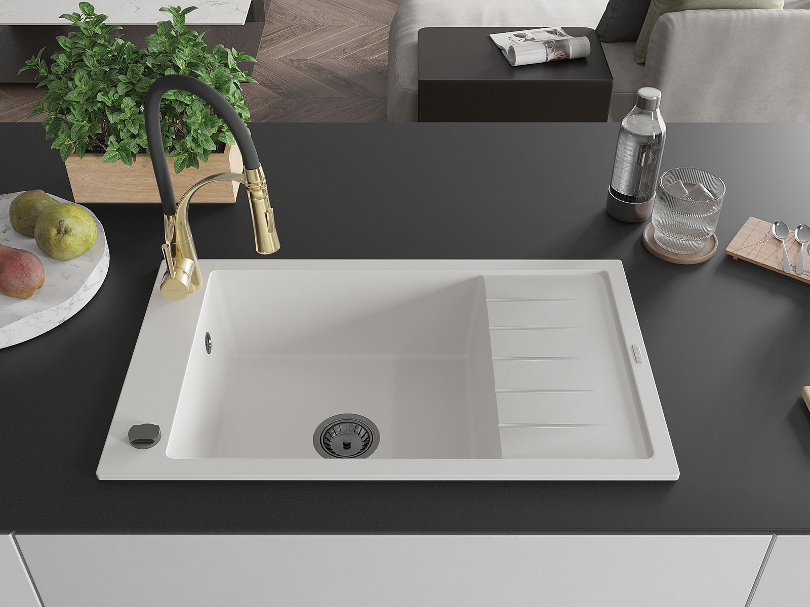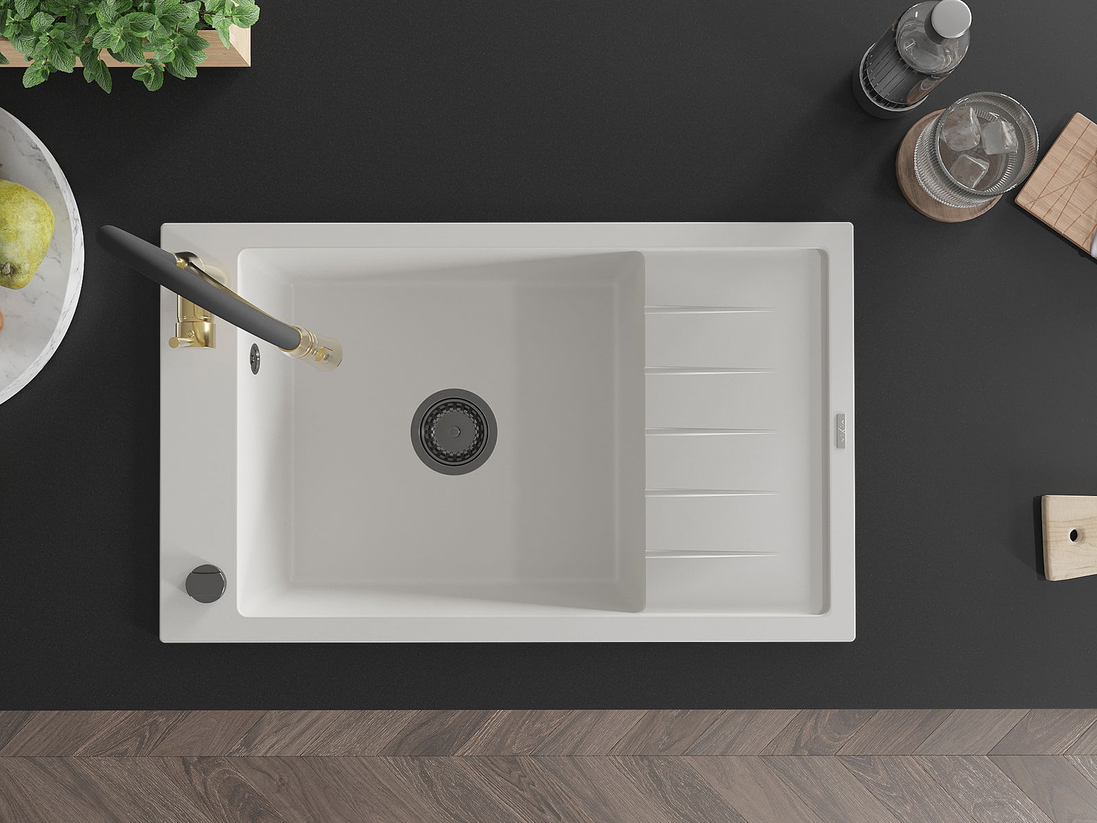 Suprafața chiuvetei este rezistentă la pete și decolorarea, datorită căreia este ușor de curățat și își păstrează culoarea mult timp. Estetică și practic completarea fiecărei bucătării.
