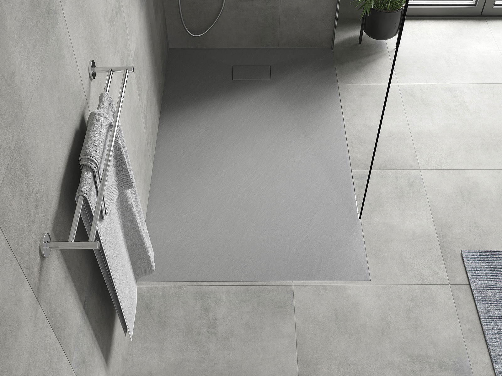 Suprafața tavii de duș seamănă cu o piatră cu structura sa. Este o combinație unică de aspect natural cu un aranjament interior modern. Adăugă caracter, subliniază estetica și eleganța decorului de baie și impresionează cu forma sa.