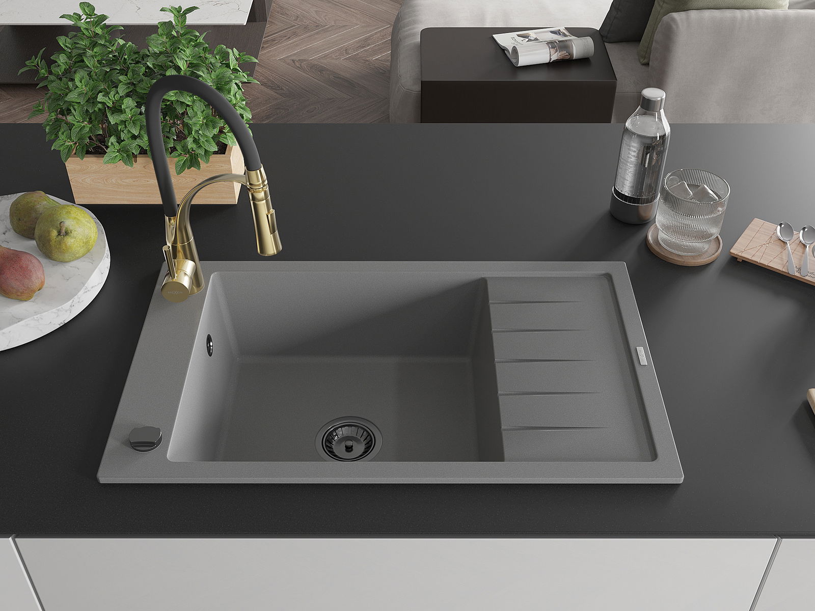 Chiuveta a fost realizată din granit de înaltă calitate. Reprezintă un complement elegant și, mai presus de toate, practic pentru orice bucătărie, indiferent de stilul acesteia. Calitatea înaltă și durabilitatea granitului asigură o utilizare de lungă durată.