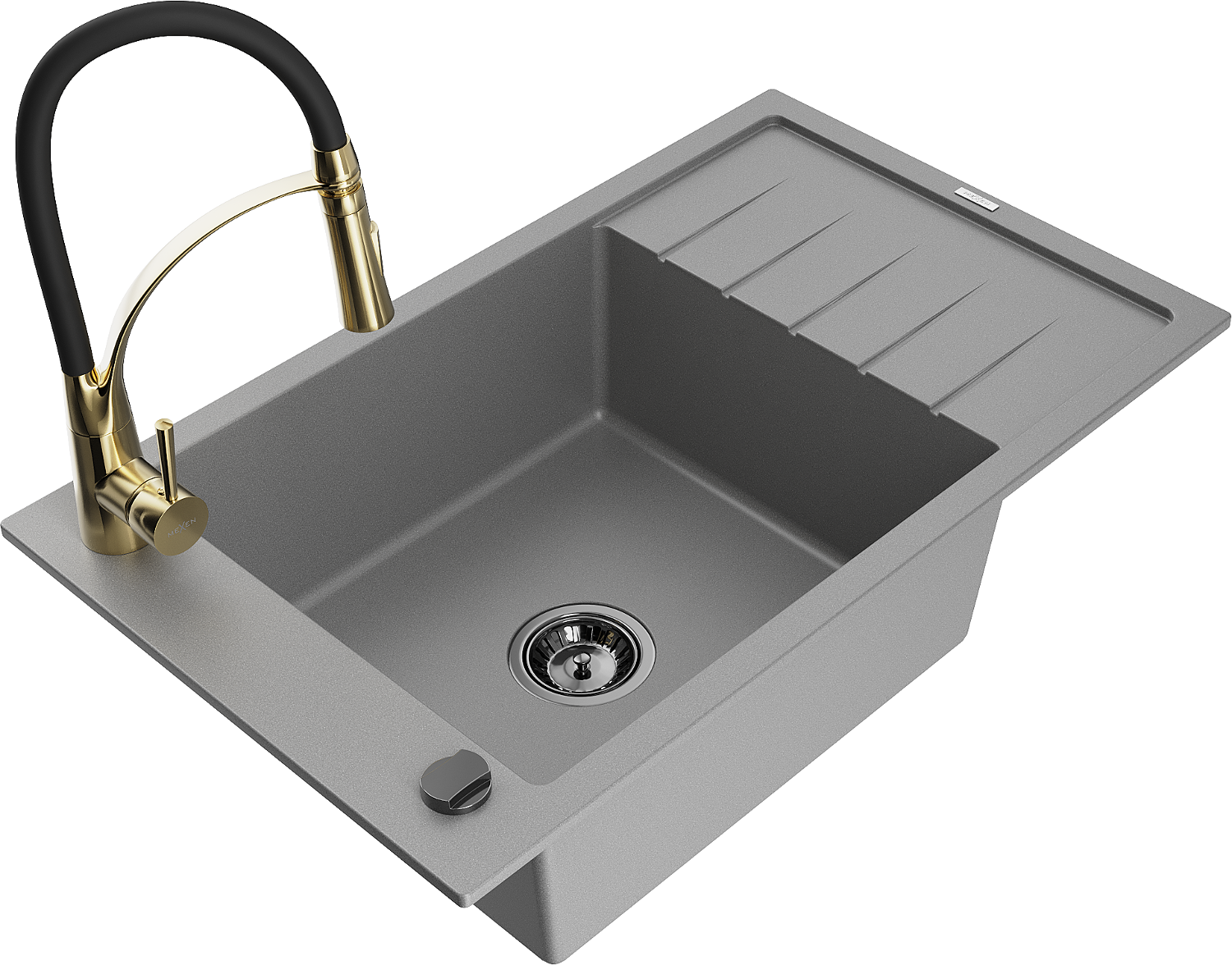 Mexen Elias chiuvetă de granit cu 1 compartiment, cu scurgător și baterie de bucătărie Aster, gri - 6511-71-73450-57-B