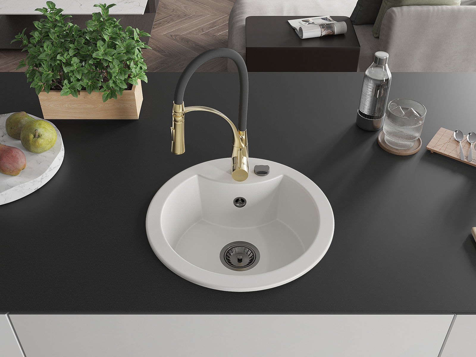 Suprafața chiuvetei este rezistentă la pete și decolorarea, datorită căreia este ușor de curățat și își păstrează culoarea mult timp. Estetică și practic completarea fiecărei bucătării.