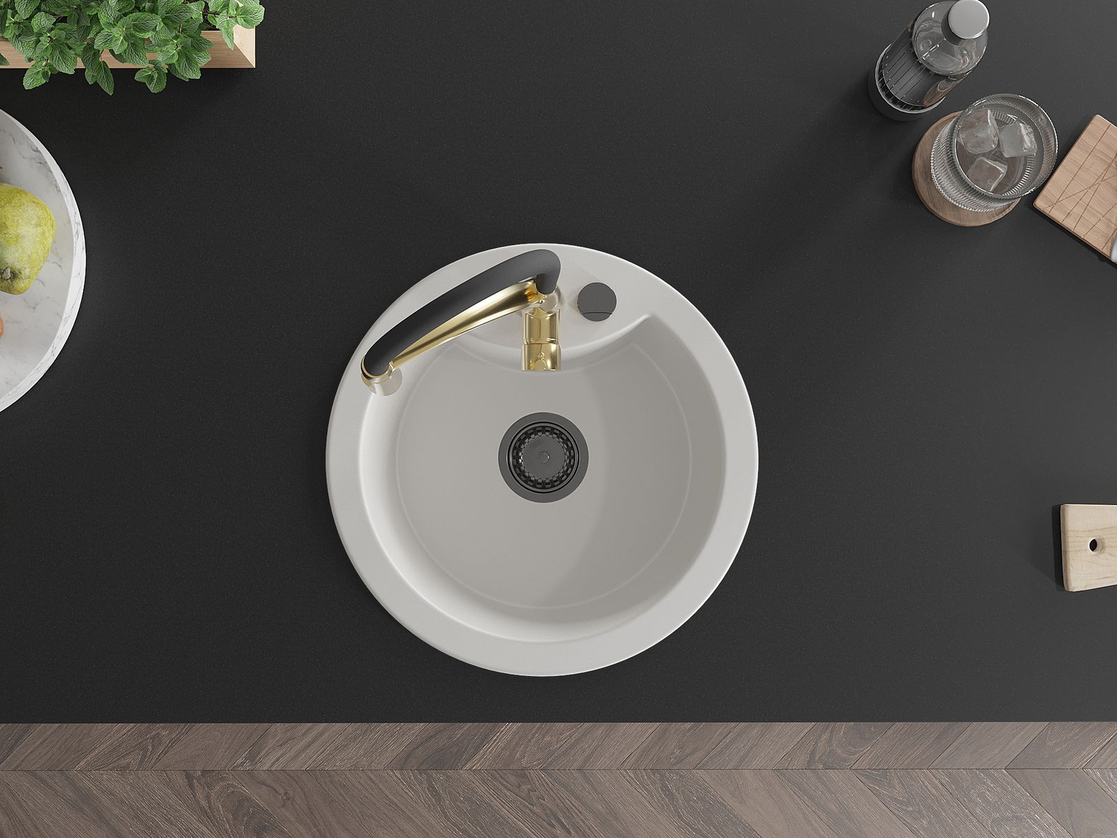 Chiuveta are o gaură prezentată cu un diametru de 35 mm pentru auto -burst. Poate fi folosit, printre altele Pentru montarea unui distribuitor de lichid care va elimina prezența sticlelor de plastic în bucătărie și îi va oferi un finisaj elegant.