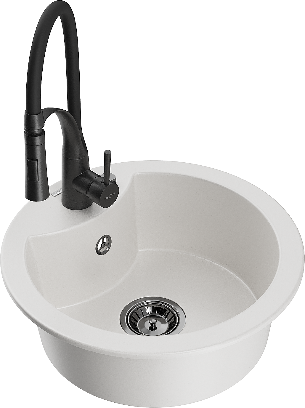 Mexen Diego chiuvetă de granit cu 1 cameră cu baterie de bucătărie Aster, alb - 6512-20-73450-70-B