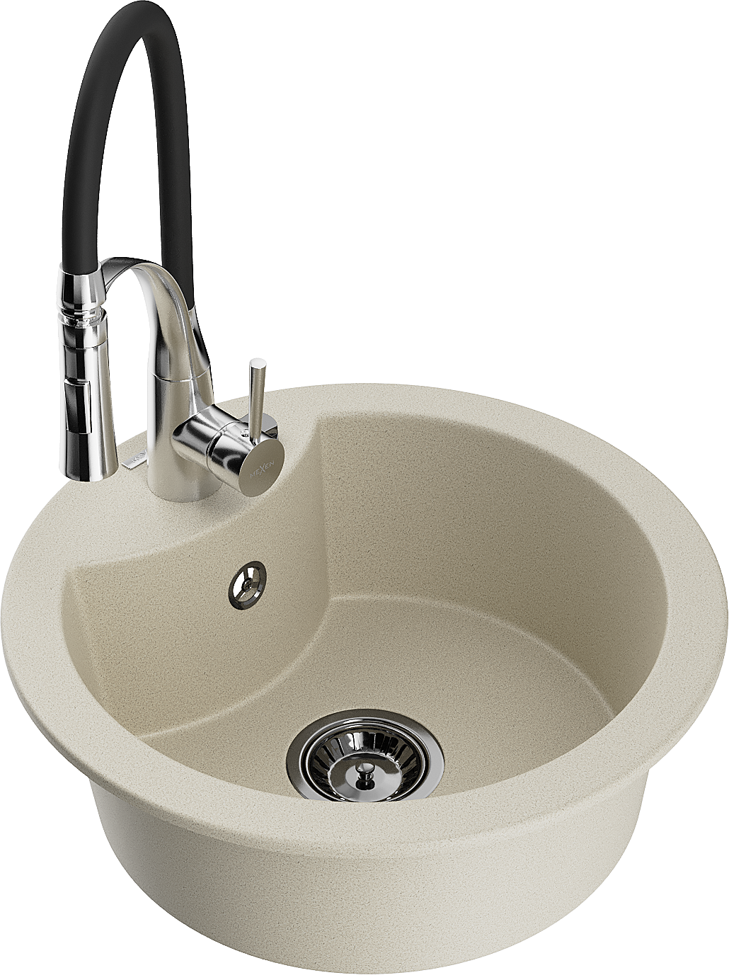 Mexen Diego chiuvetă granitică cu 1 cuvă cu robinet de bucătărie Aster, bej - 6512-69-73450-07-B