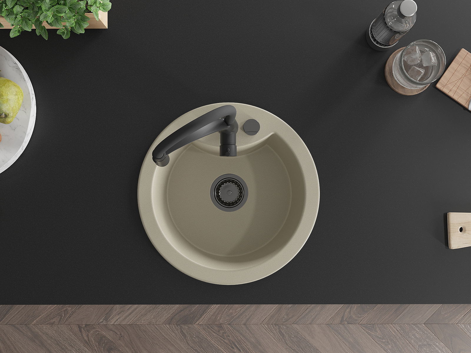 Suprafața chiuvetei este rezistentă la pete și decolorarea, datorită căreia este ușor de curățat și își păstrează culoarea mult timp. Estetică și practic completarea fiecărei bucătării.