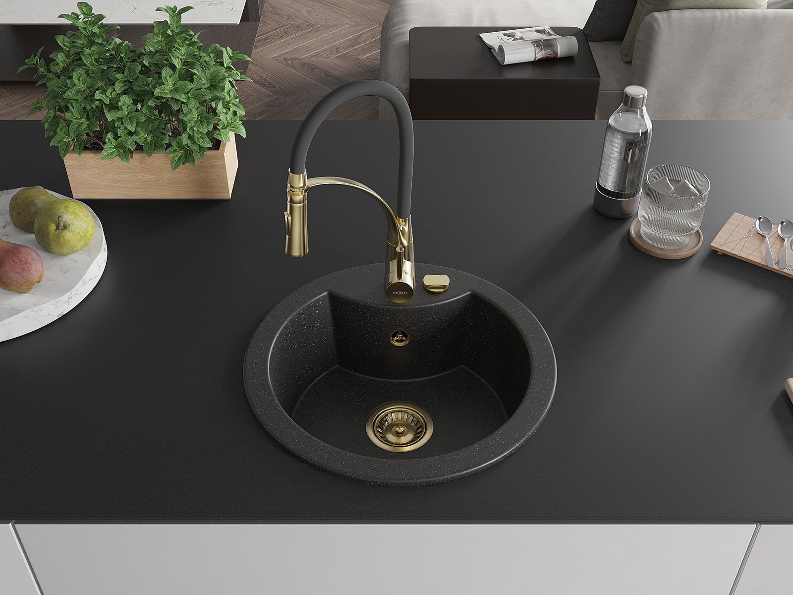 Chiuveta este confecționată din granit de înaltă calitate. Este un complement elegant și, mai ales, practic pentru fiecare bucătărie, indiferent de stilul său. Durabilitatea de înaltă calitate și granit asigură mulți ani de utilizare.
