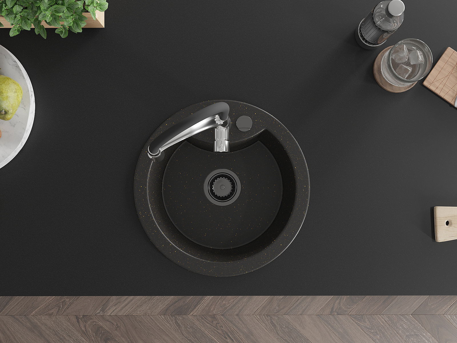 Chiuveta are o gaură prezentată cu un diametru de 35 mm pentru auto -burst. Poate fi folosit, printre altele Pentru montarea unui distribuitor de lichid care va elimina prezența sticlelor de plastic în bucătărie și îi va oferi un finisaj elegant.