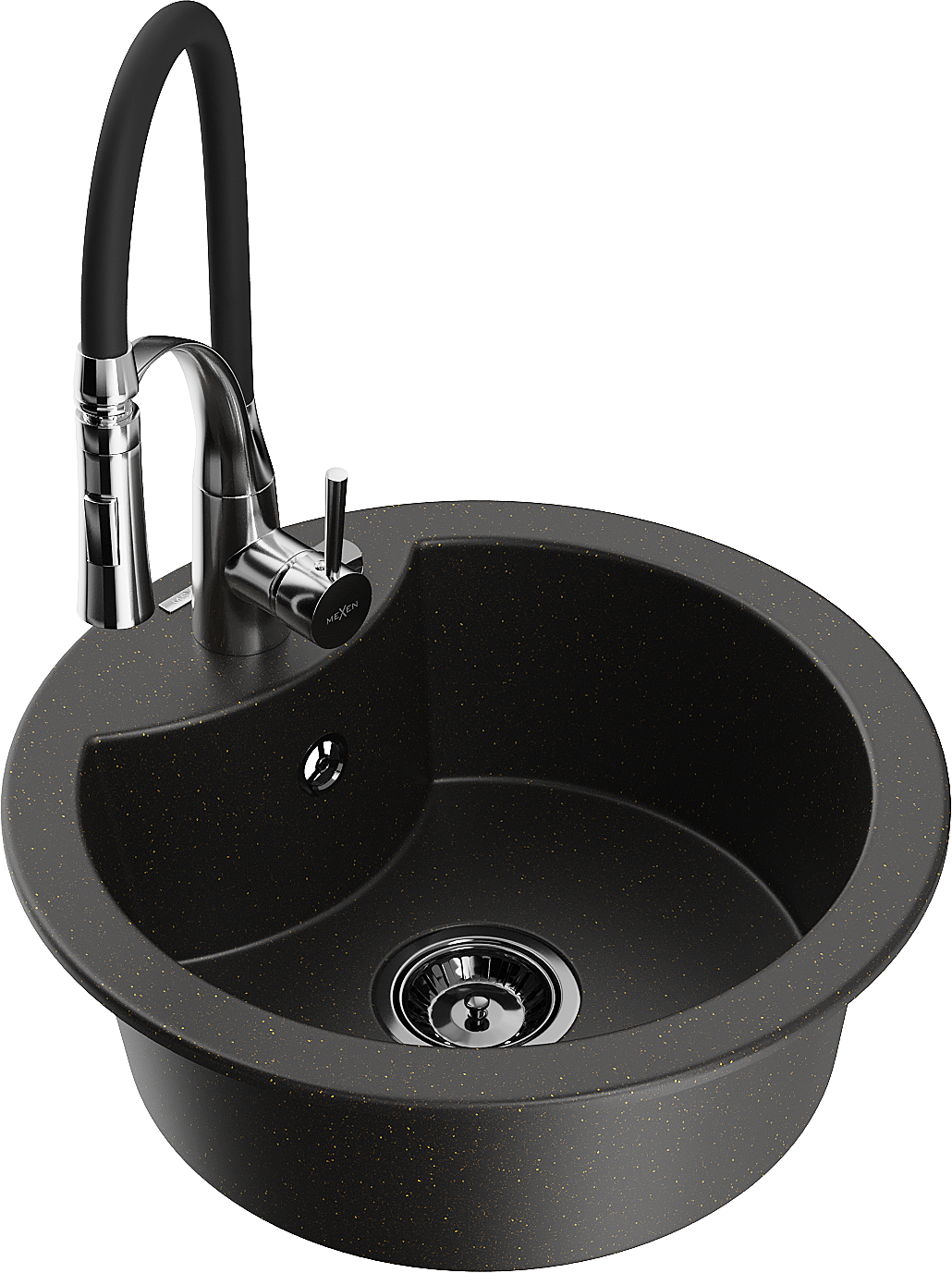 Mexen Diego chiuvetă de bucătărie din granit cu 1 compartiment și baterie Aster, negru/auriu metalizat - 6512-75-73450-07-B