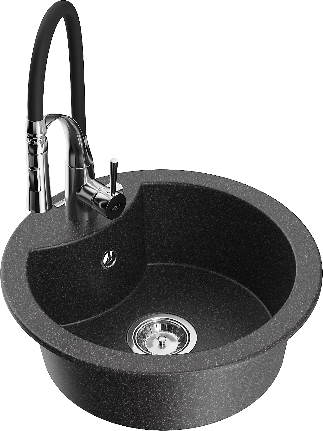 Mexen Diego chiuvetă granit 1-cameră cu baterie de bucătărie Aster, negru punctat - 6512-76-73450-07