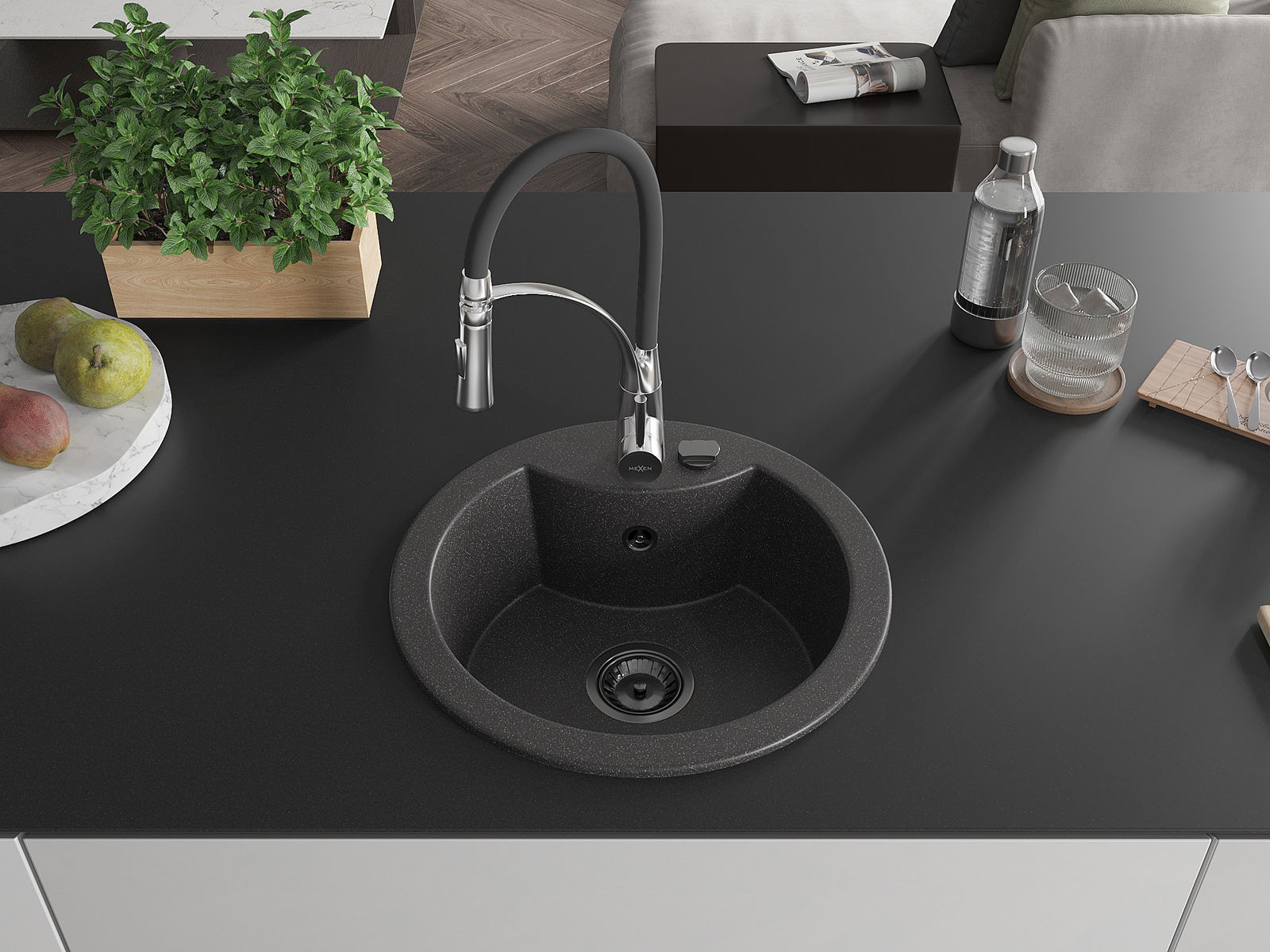 Chiuveta este confecționată din granit de înaltă calitate. Este un complement elegant și, mai ales, practic pentru fiecare bucătărie, indiferent de stilul său. Durabilitatea de înaltă calitate și granit asigură mulți ani de utilizare.