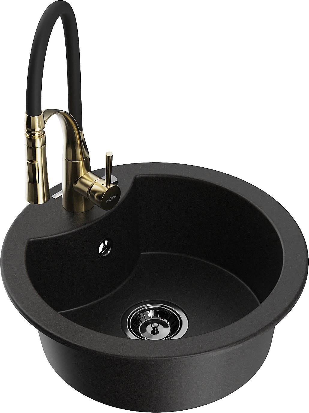 Mexen Diego chiuvetă de granit cu 1 cuvă cu baterie de bucătărie Aster, negru - 6512-77-73450-57-B