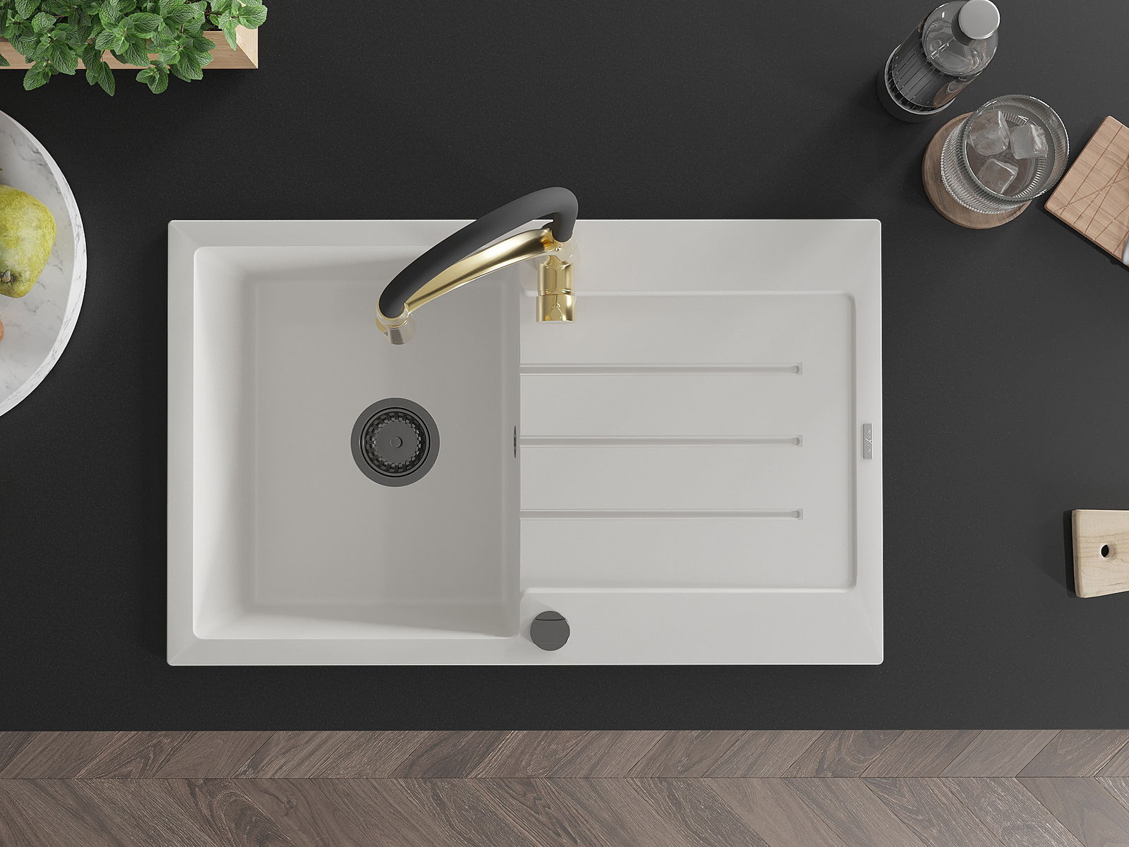 Suprafața chiuvetei este rezistentă la pete și decolorare, ceea ce o face ușor de întreținut și își păstrează culoarea pentru o perioadă lungă de utilizare. Un complet estetic și practic pentru orice bucătărie.