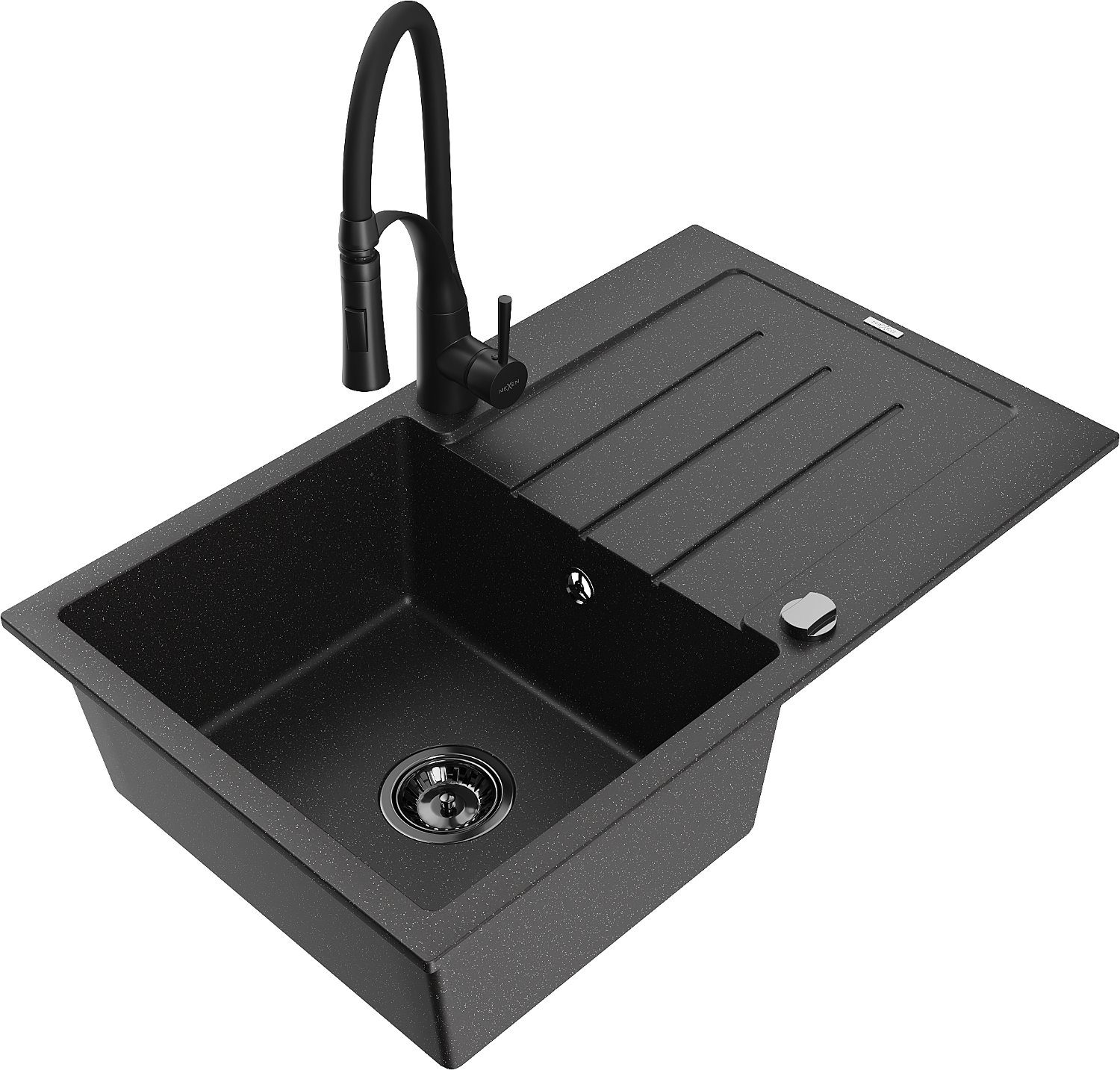 Mexen Bruno chiuvetă de bucătărie din granit cu 1 compartiment cu scurgător și baterie de bucătărie Aster,