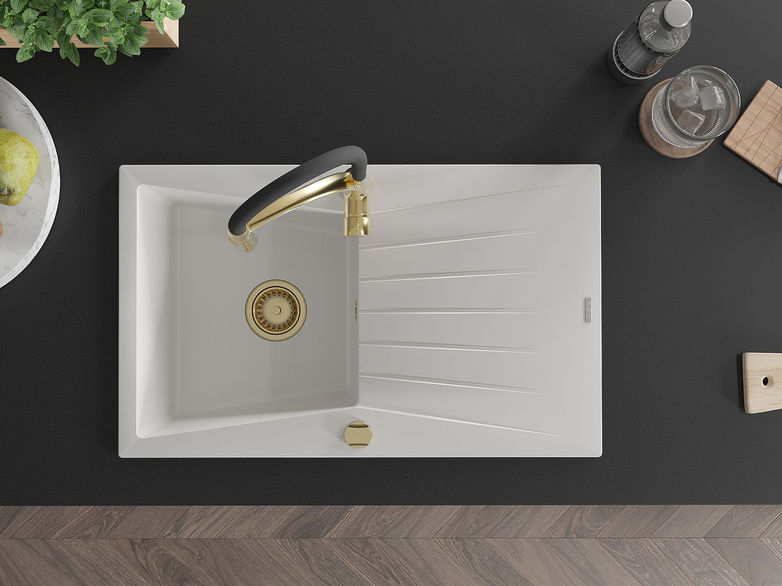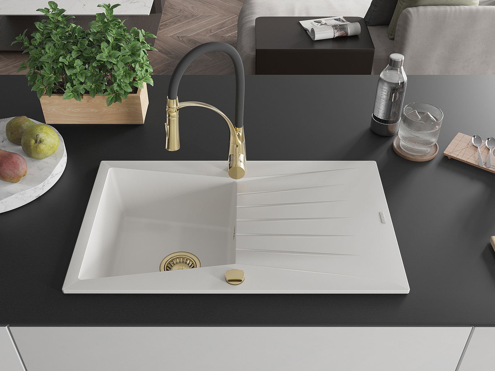 Suprafața chiuvetei este rezistentă la pete și decolorare, ceea ce o face ușor de întreținut și își păstrează culoarea pentru o perioadă lungă de utilizare. Un complet estetic și practic pentru orice bucătărie.
