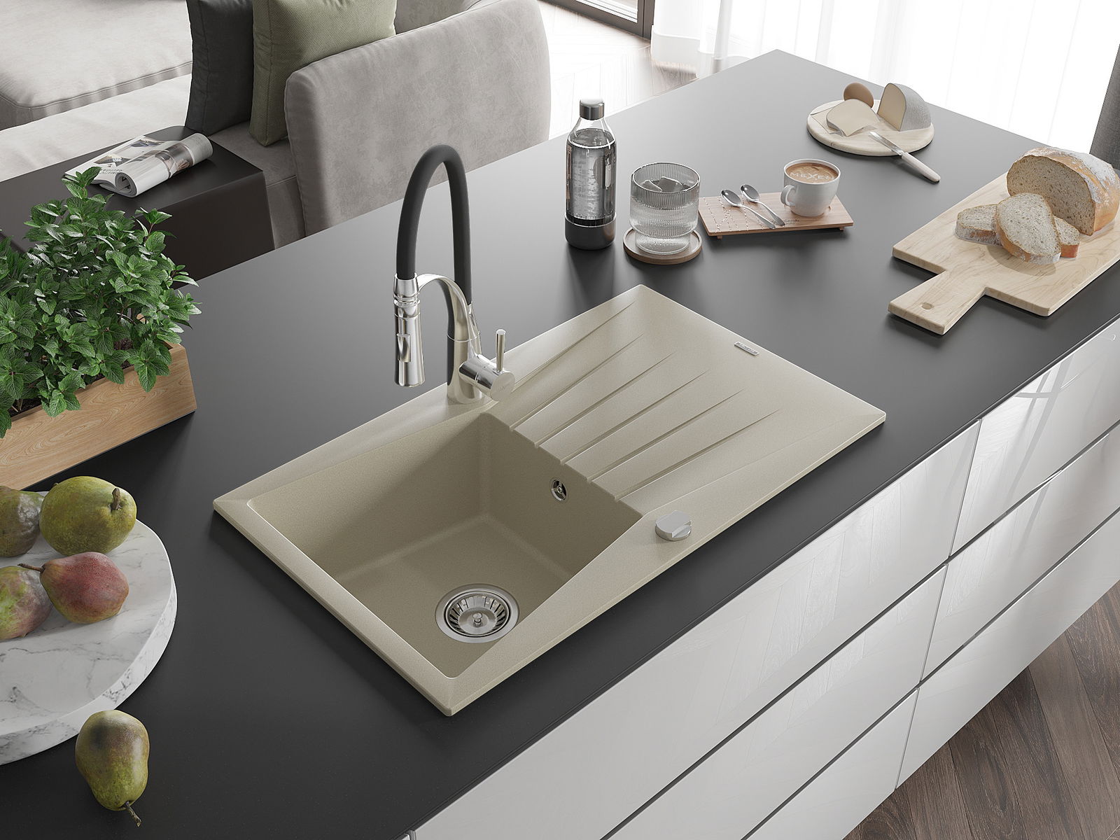 Chiuveta este confecționată din granit de înaltă calitate. Este un complement elegant și, mai ales, practic pentru fiecare bucătărie, indiferent de stilul său. Durabilitatea de înaltă calitate și granit asigură mulți ani de utilizare.