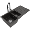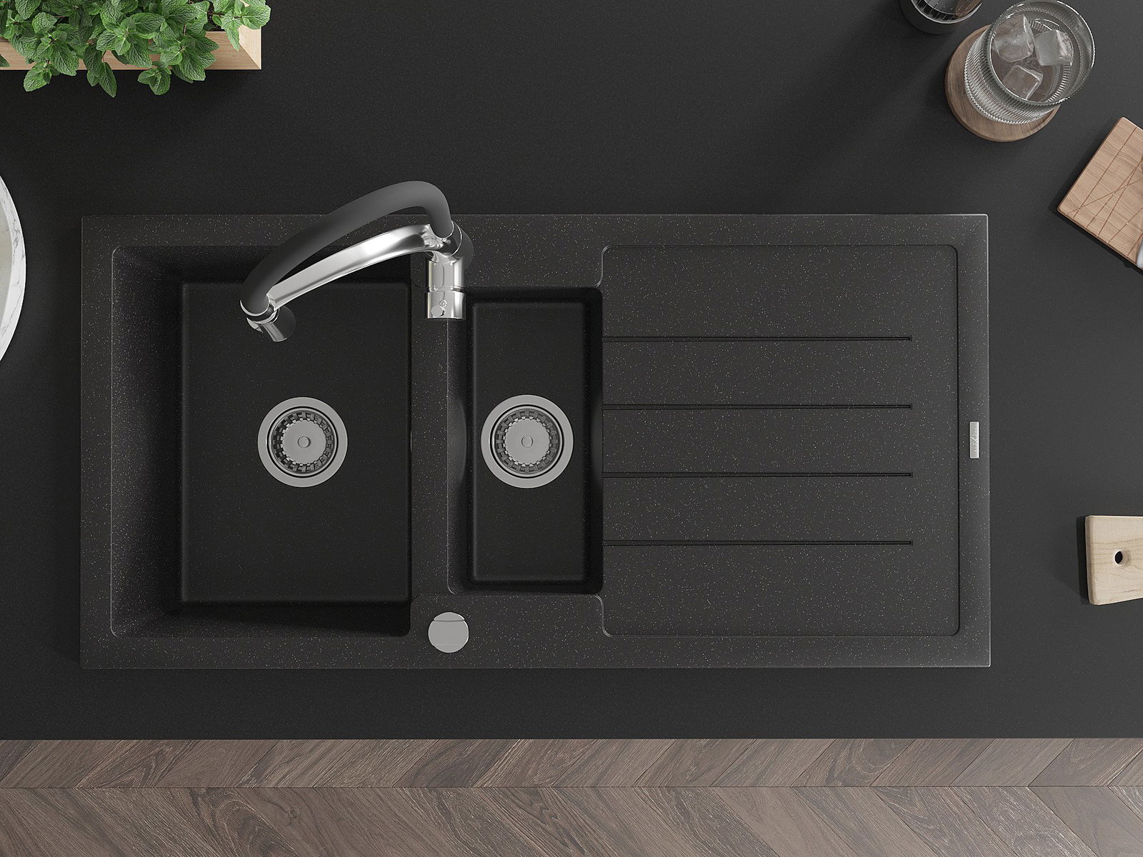 Mexen Andres chiuvetă din granit cu 1,5 camere cu scurgător și baterie de bucătărie Aster, negru/argintiu metalic