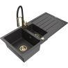 Mexen Andres chiuvetă din granit cu 1,5 cuve cu scurgător și baterie de bucătărie Aster, negru/auriu metalizat