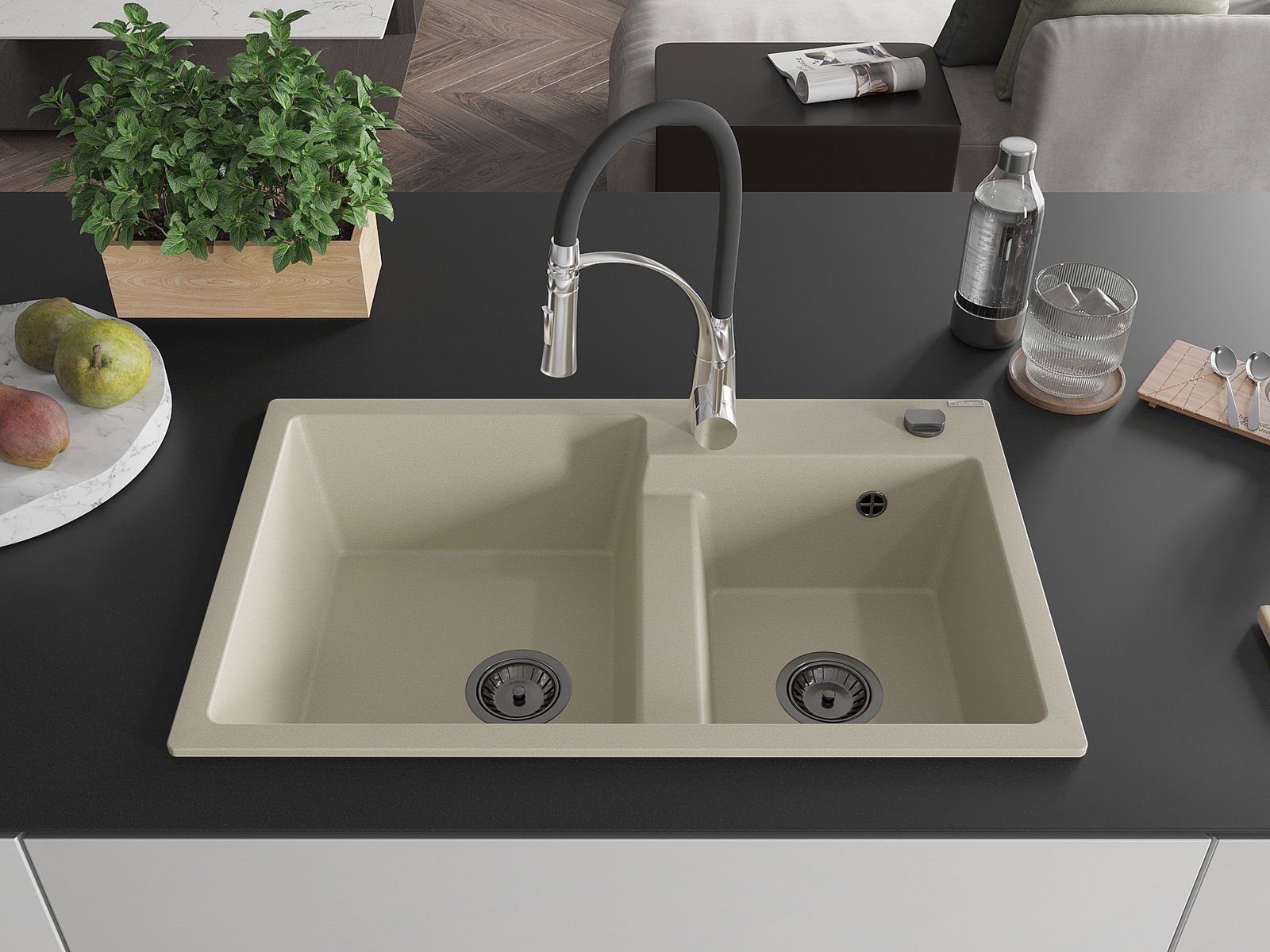 Suprafața chiuvetei este rezistentă la pete și decolorarea, datorită căreia este ușor de curățat și își păstrează culoarea mult timp. Estetică și practic completarea fiecărei bucătării.