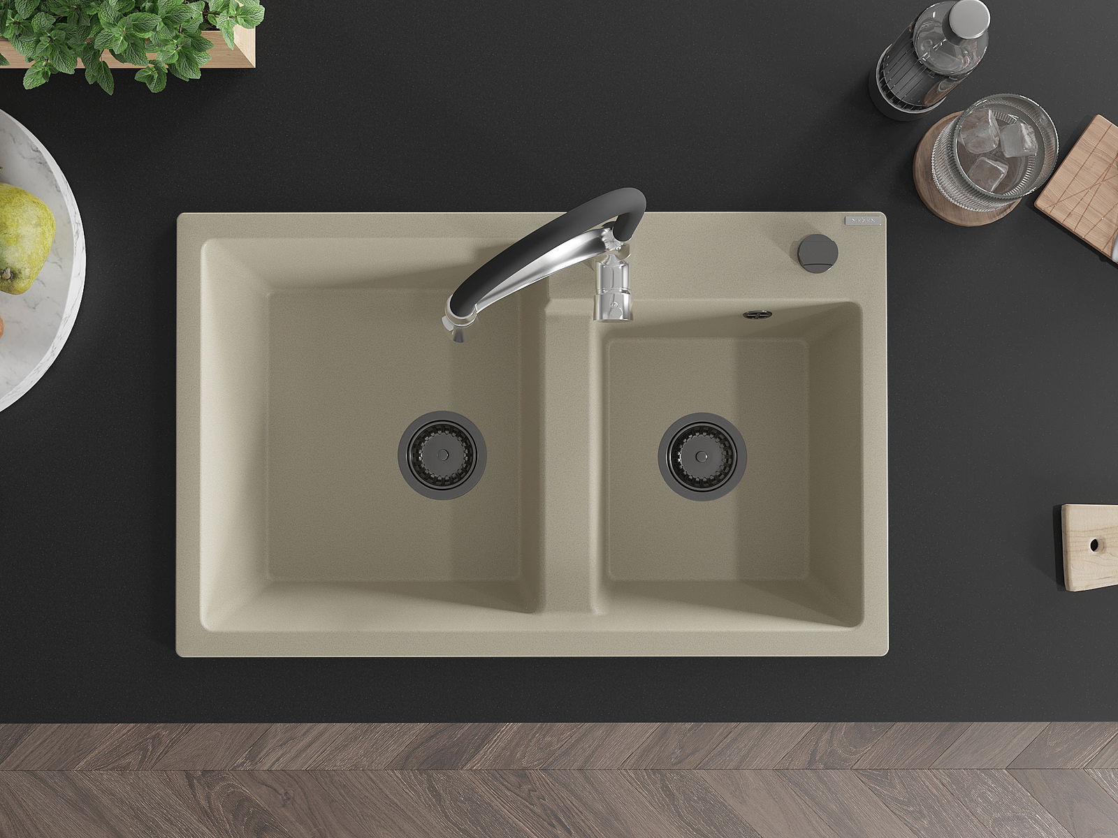 Mexen Tomas chiuvetă din granit cu 2 compartimente cu baterie de bucătărie Aster, bej - 6516-69-73450-07-B