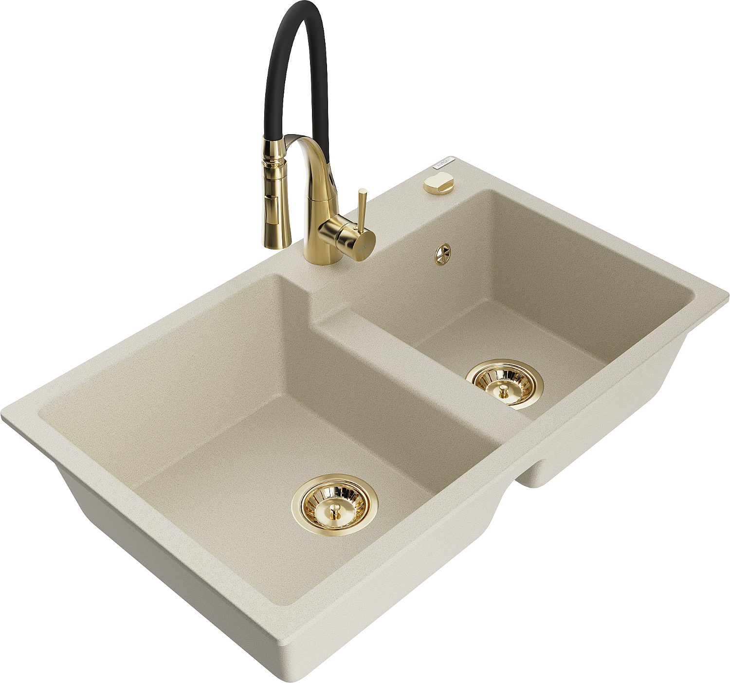 Mexen Tomas chiuvetă de bucătărie din granit cu 2 compartimente și baterie de bucătărie Aster, bej - 6516-69-73450-57-G