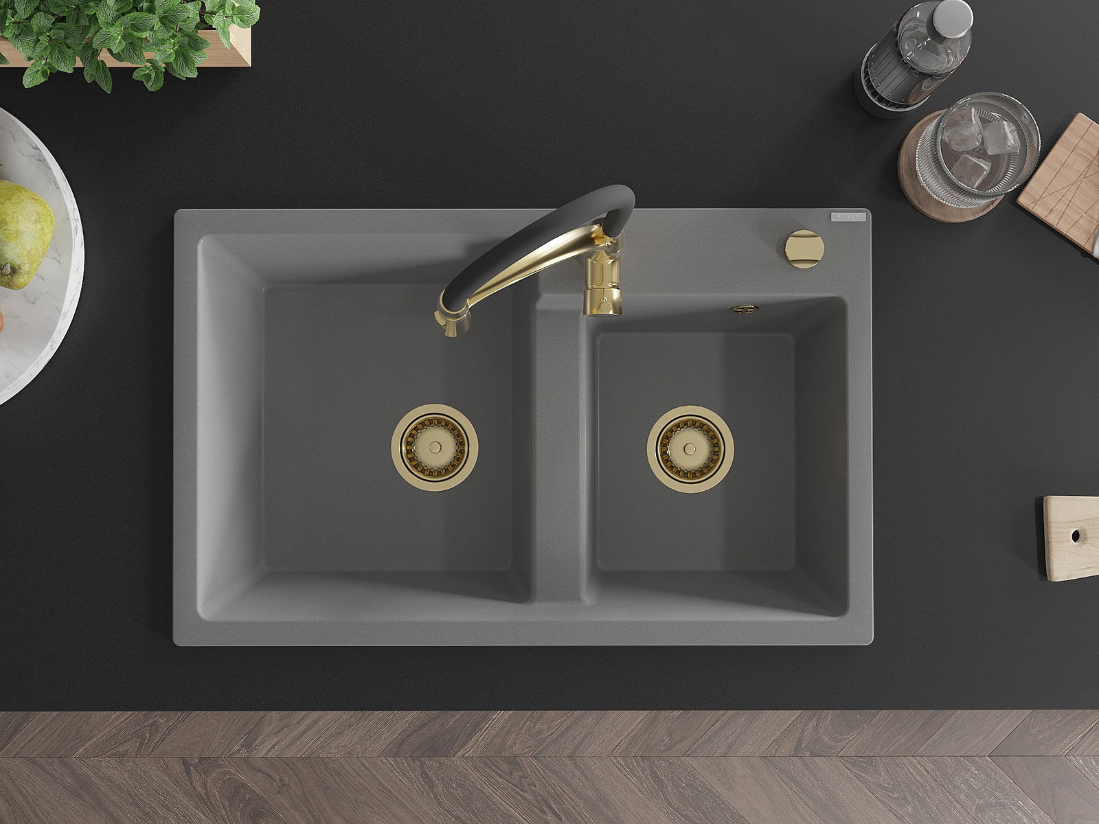 Mexen Tomas chiuvetă de granit cu 2 compartimente cu baterie de bucătărie Aster, gri - 6516-71-73450-57-G
