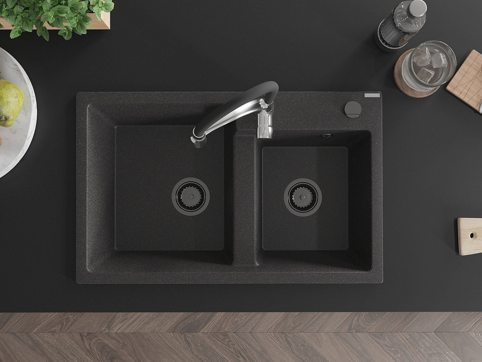 Chiuveta are o gaură prezentată cu un diametru de 35 mm pentru auto -burst. Poate fi folosit, printre altele Pentru montarea unui distribuitor de lichid care va elimina prezența sticlelor de plastic în bucătărie și îi va oferi un finisaj elegant.
