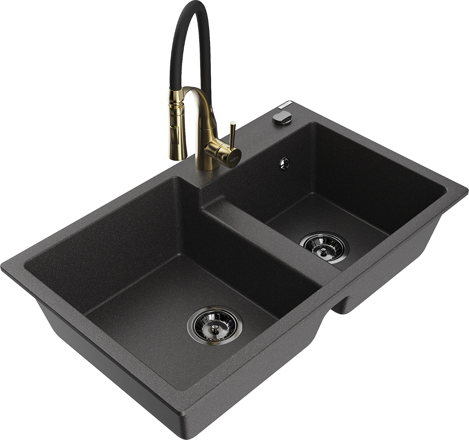 Mexen Tomas chiuvetă granit cu 2 compartimente cu baterie de bucătărie Aster, negru pătat - 6516-76-73450-57-B