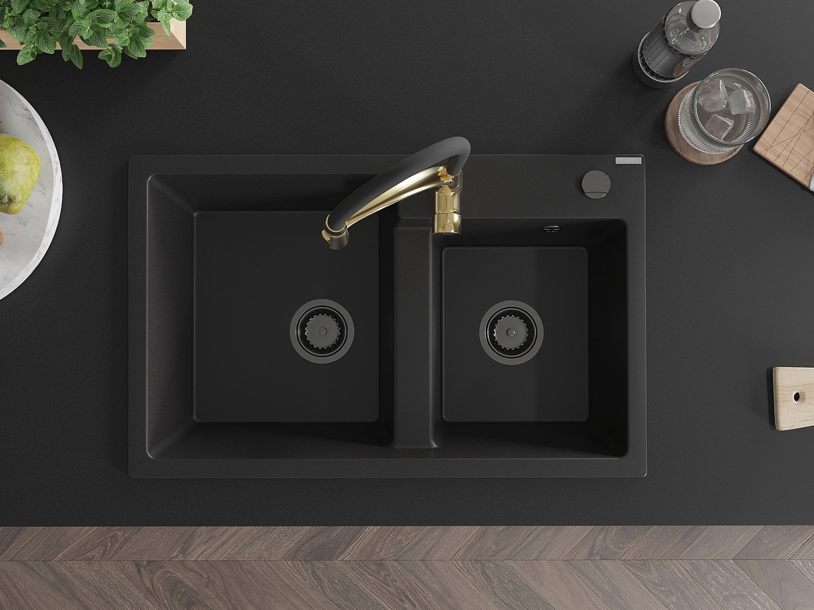 Chiuveta are o gaură prezentată cu un diametru de 35 mm pentru auto -burst. Poate fi folosit, printre altele Pentru montarea unui distribuitor de lichid care va elimina prezența sticlelor de plastic în bucătărie și îi va oferi un finisaj elegant.
