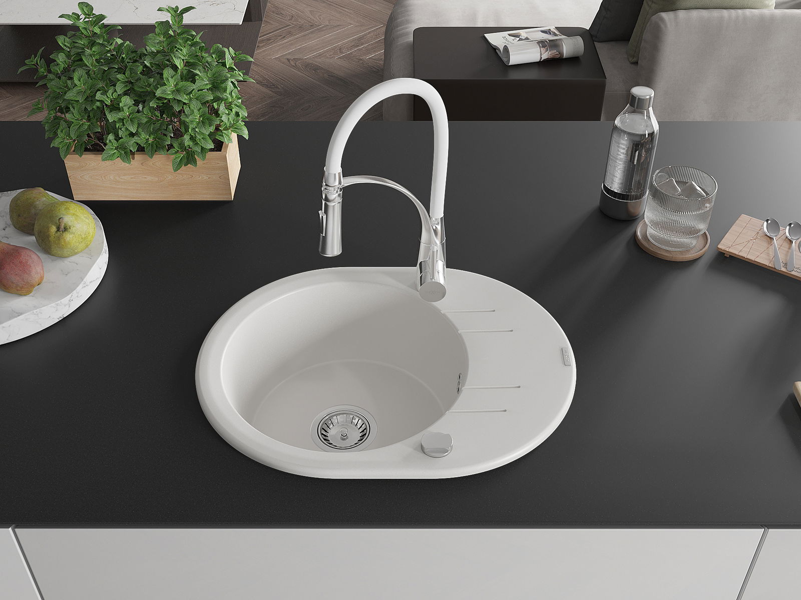 Suprafața chiuvetei este rezistentă la pete și decolorarea, datorită căreia este ușor de curățat și își păstrează culoarea mult timp. Estetică și practic completarea fiecărei bucătării.