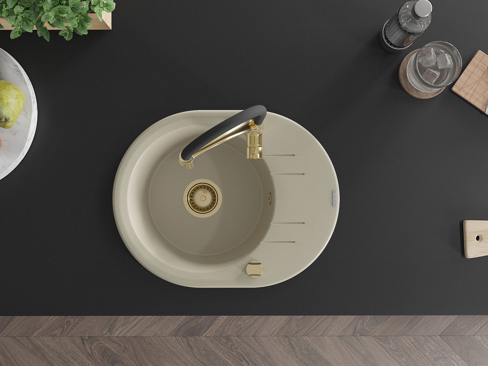 Suprafața chiuvetei este rezistentă la pete și decolorarea, datorită căreia este ușor de curățat și își păstrează culoarea mult timp. Estetică și practic completarea fiecărei bucătării.