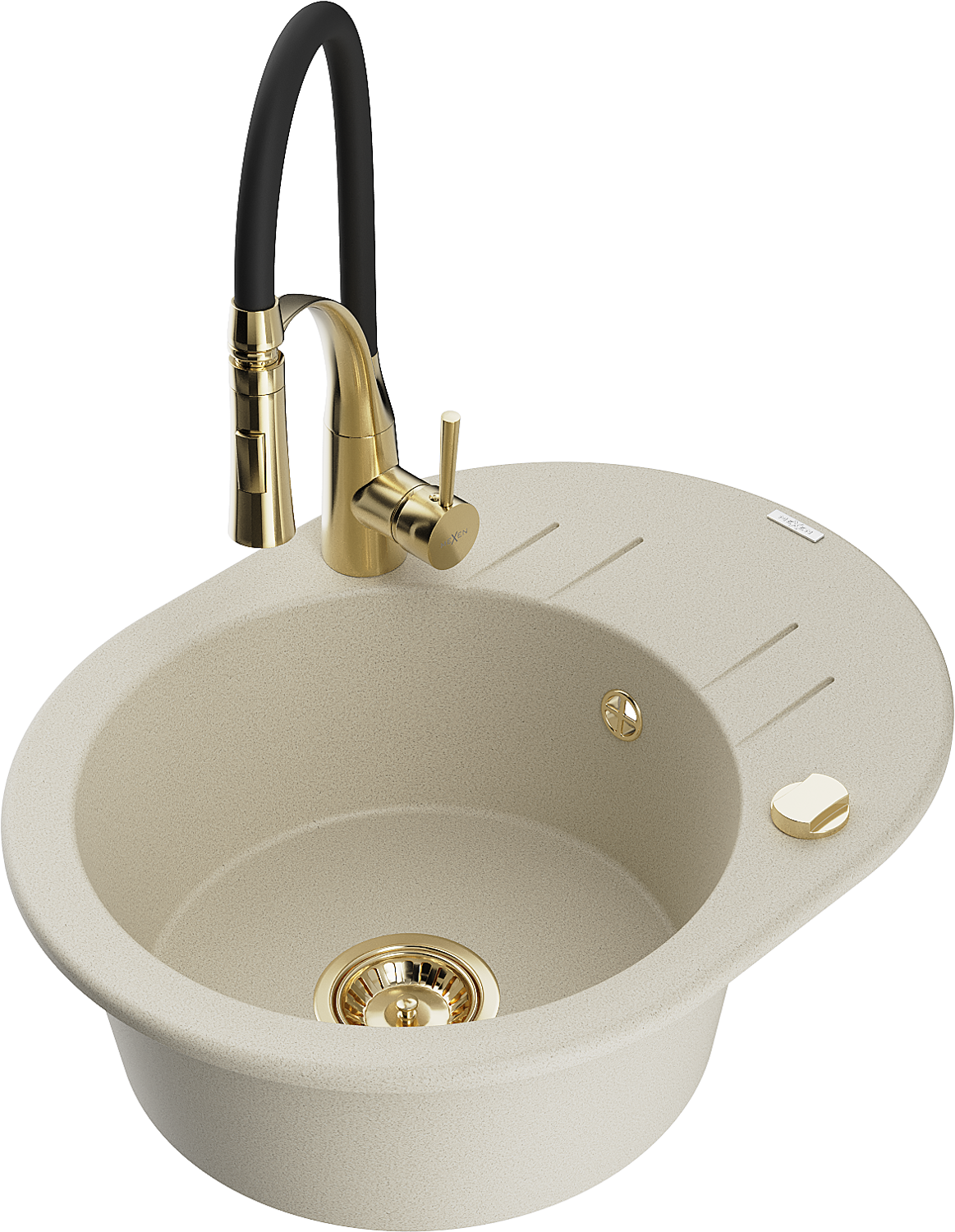 Mexen Kevin chiuvetă de granit cu o cuvă și scurgător și baterie de bucătărie Aster, bej - 6517-69-73450-57-G