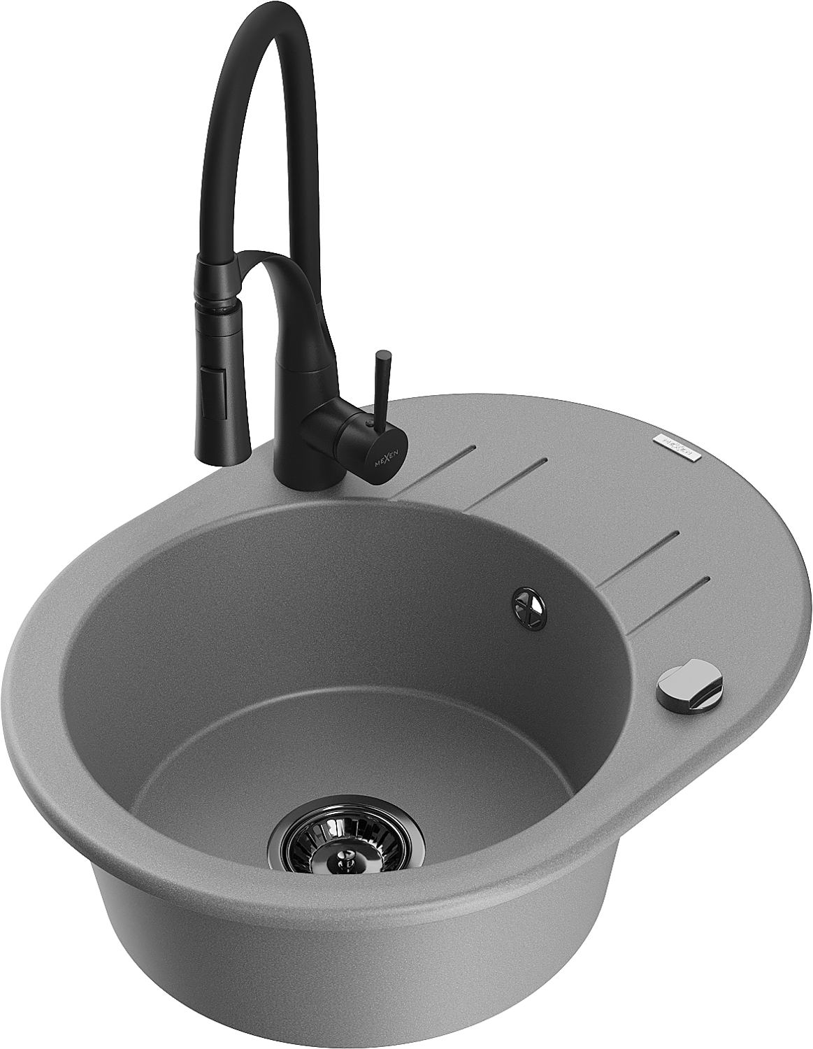 Mexen Kevin chiuvetă de granit cu 1 cameră, cu scurgător și baterie de bucătărie Aster, gri - 6517-71-73450-70-B