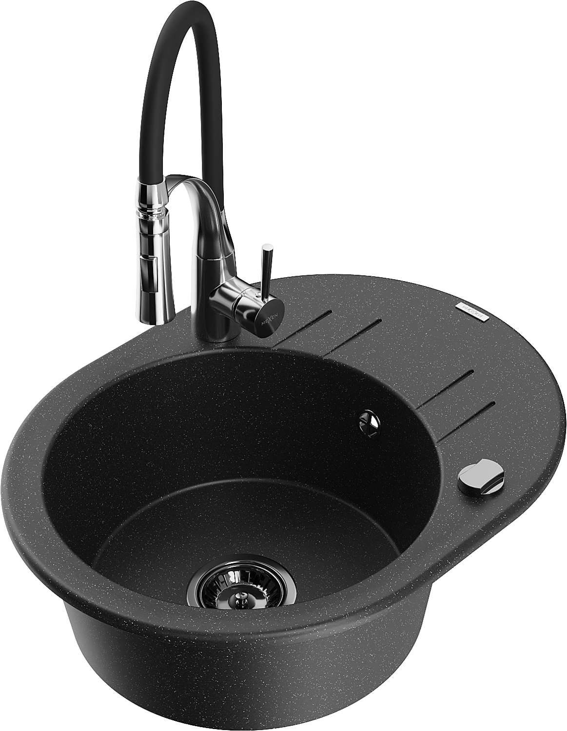 Mexen Kevin chiuvetă de granit cu 1 cameră cu picurător și baterie de bucătărie Aster, negru/argintiu metalic - 6517-73-73450-0?