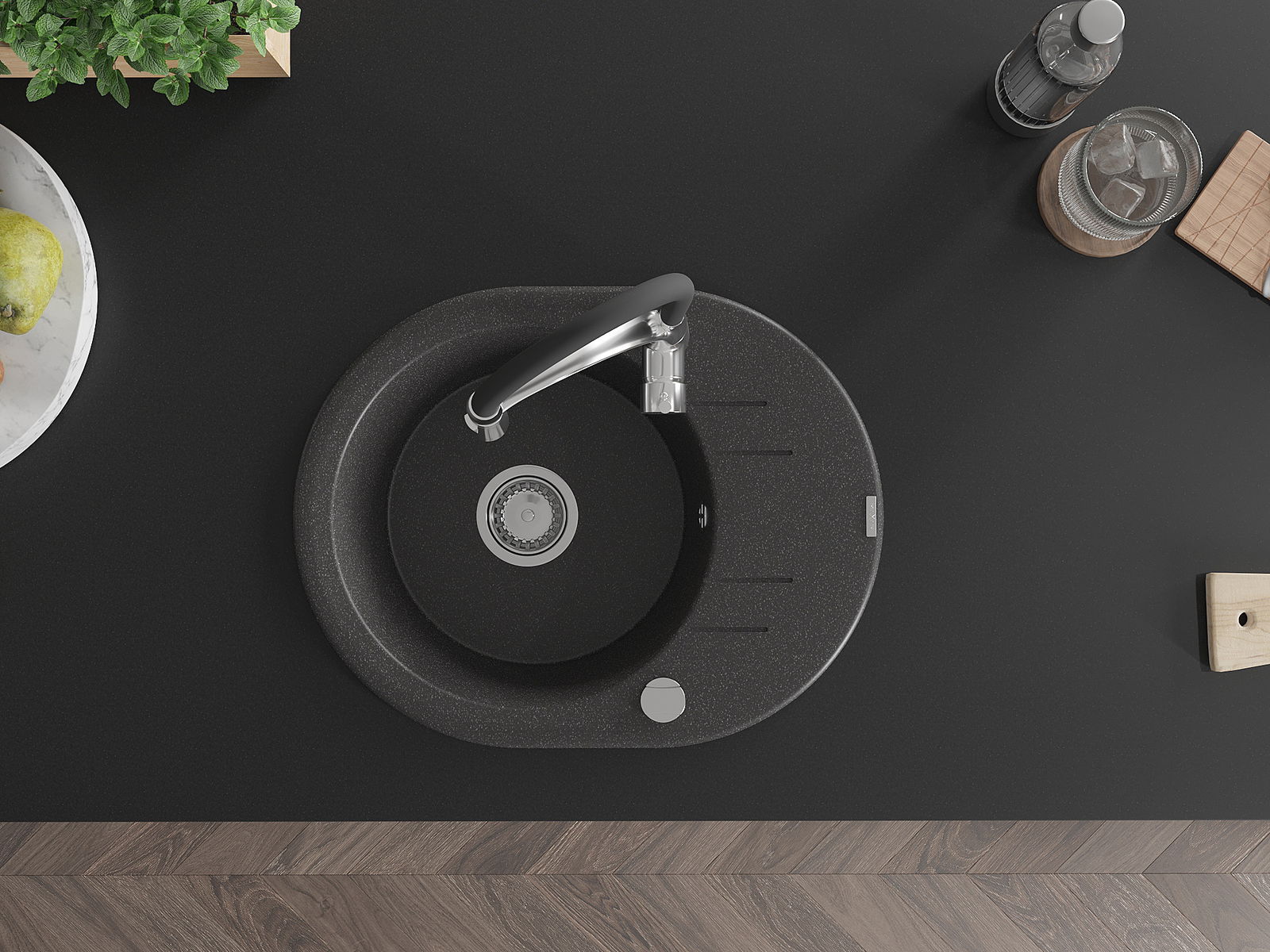 Chiuveta este confecționată din granit de înaltă calitate. Este un complement elegant și, mai ales, practic pentru fiecare bucătărie, indiferent de stilul său. Durabilitatea de înaltă calitate și granit asigură mulți ani de utilizare.