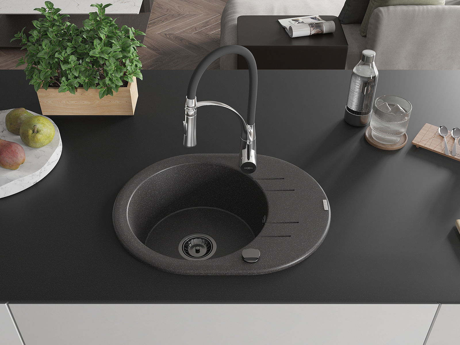 Chiuveta este confecționată din granit de înaltă calitate. Este un complement elegant și, mai ales, practic pentru fiecare bucătărie, indiferent de stilul său. Durabilitatea de înaltă calitate și granit asigură mulți ani de utilizare.