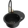Mexen Kevin chiuvetă de bucătărie din granit cu 1 compartiment, cu scurgător și baterie Aster, negru stropit