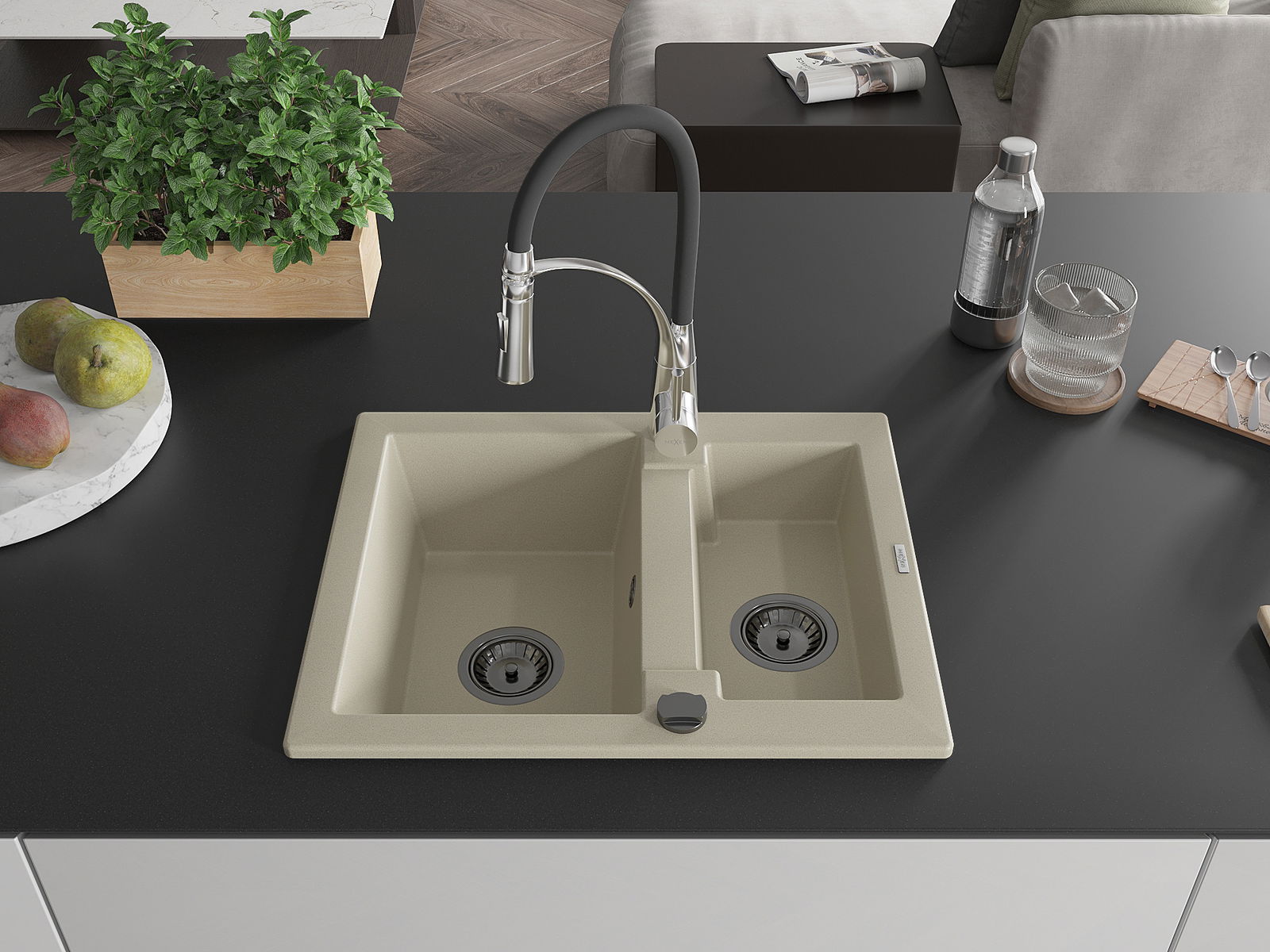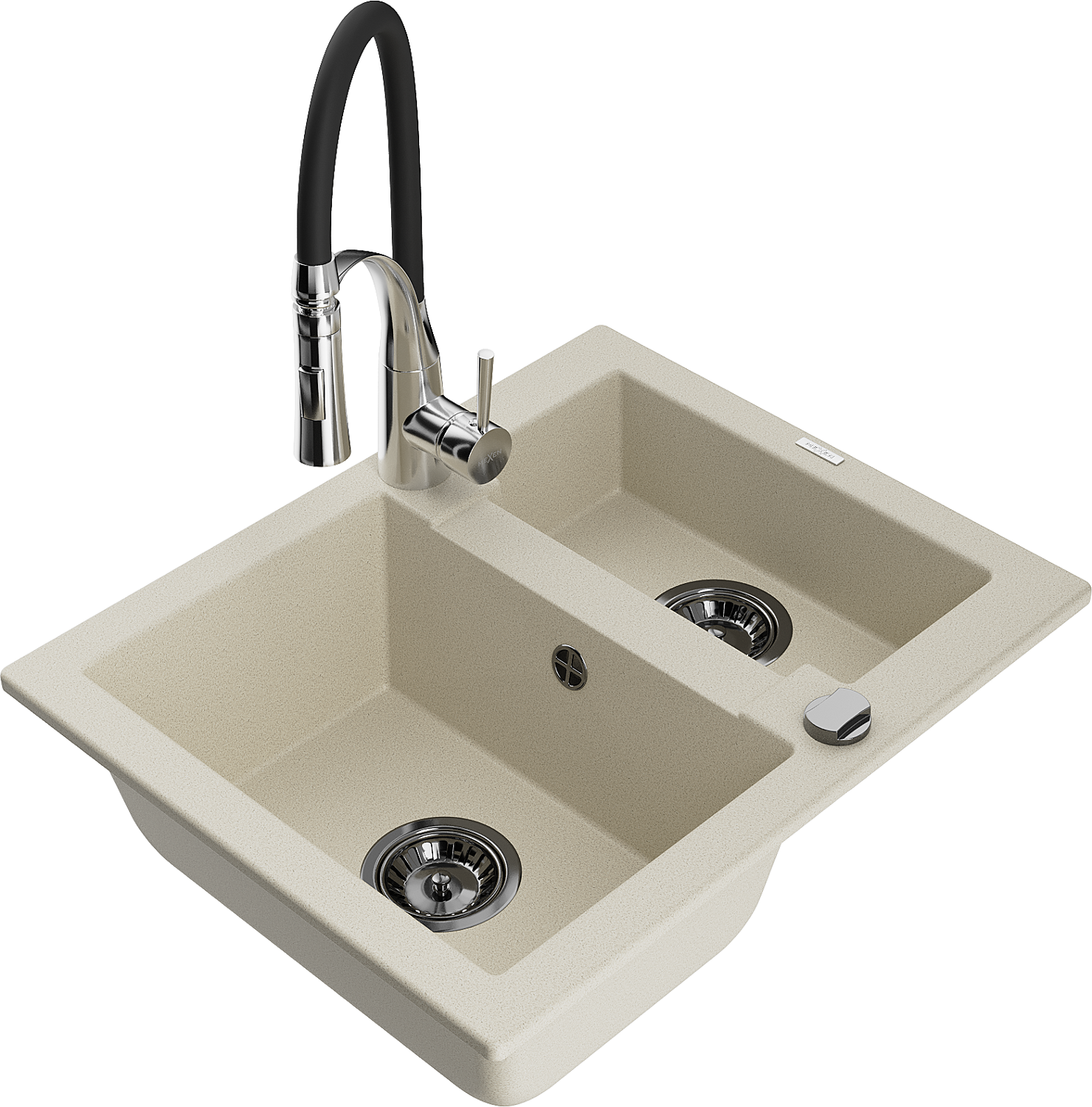 Mexen Carlos chiuvetă de granit 1,5 compartimente cu baterie de bucătărie Aster, bej - 6518-69-73450-07-B