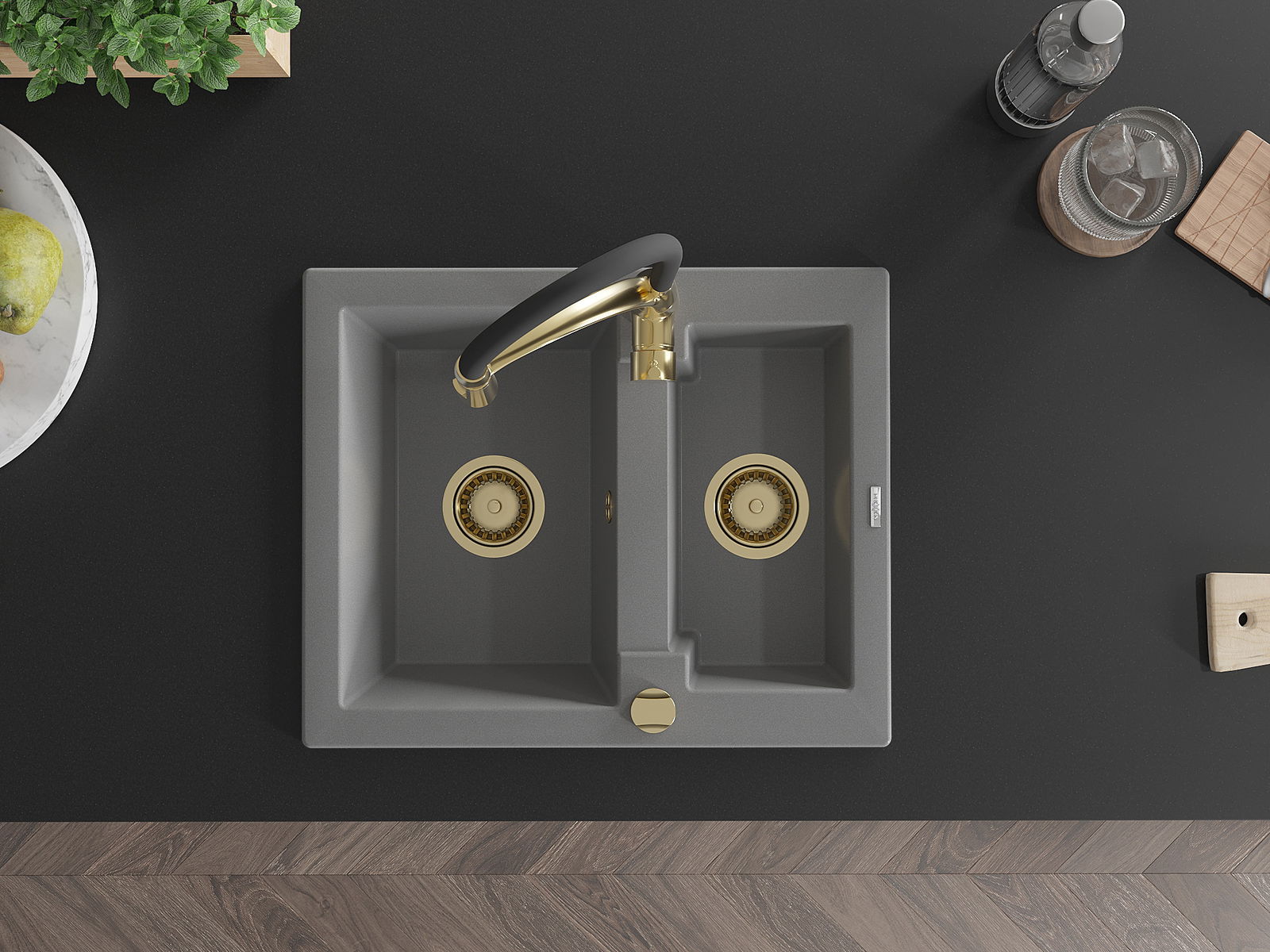 Mexen Carlos chiuvetă de granit 1,5 compartimente cu baterie de bucătărie Aster, gri - 6518-71-73450-57-G