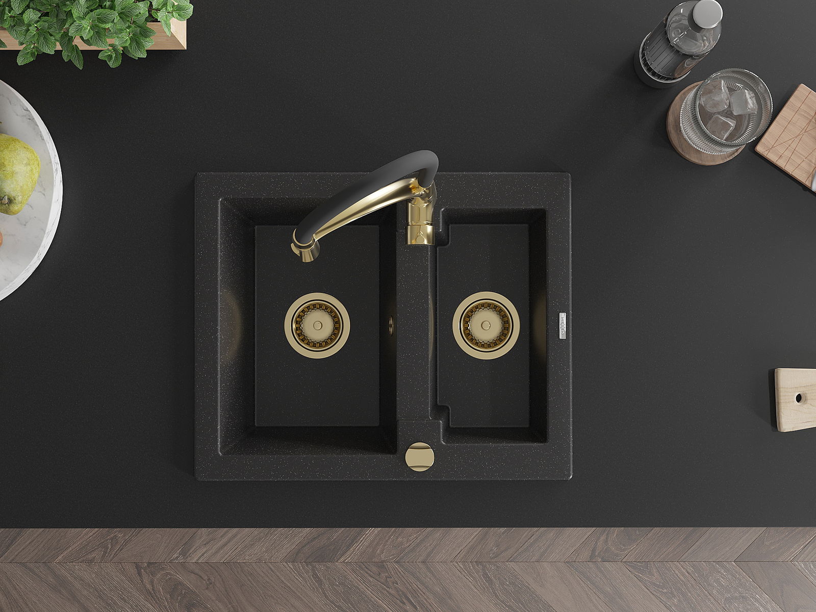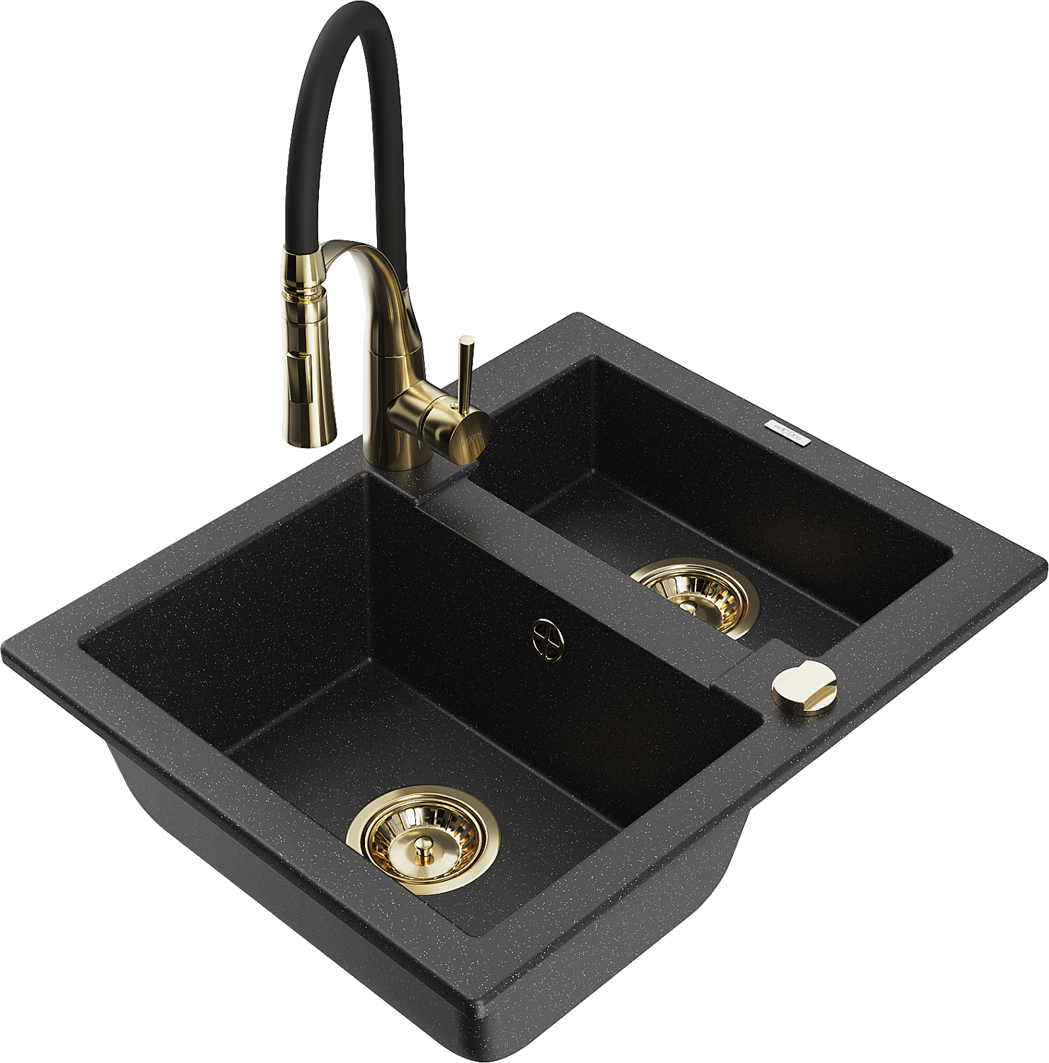 Mexen Carlos chiuvetă din granit cu 1,5 compartimente și baterie de bucătărie Aster, negru/metalizat argintiu