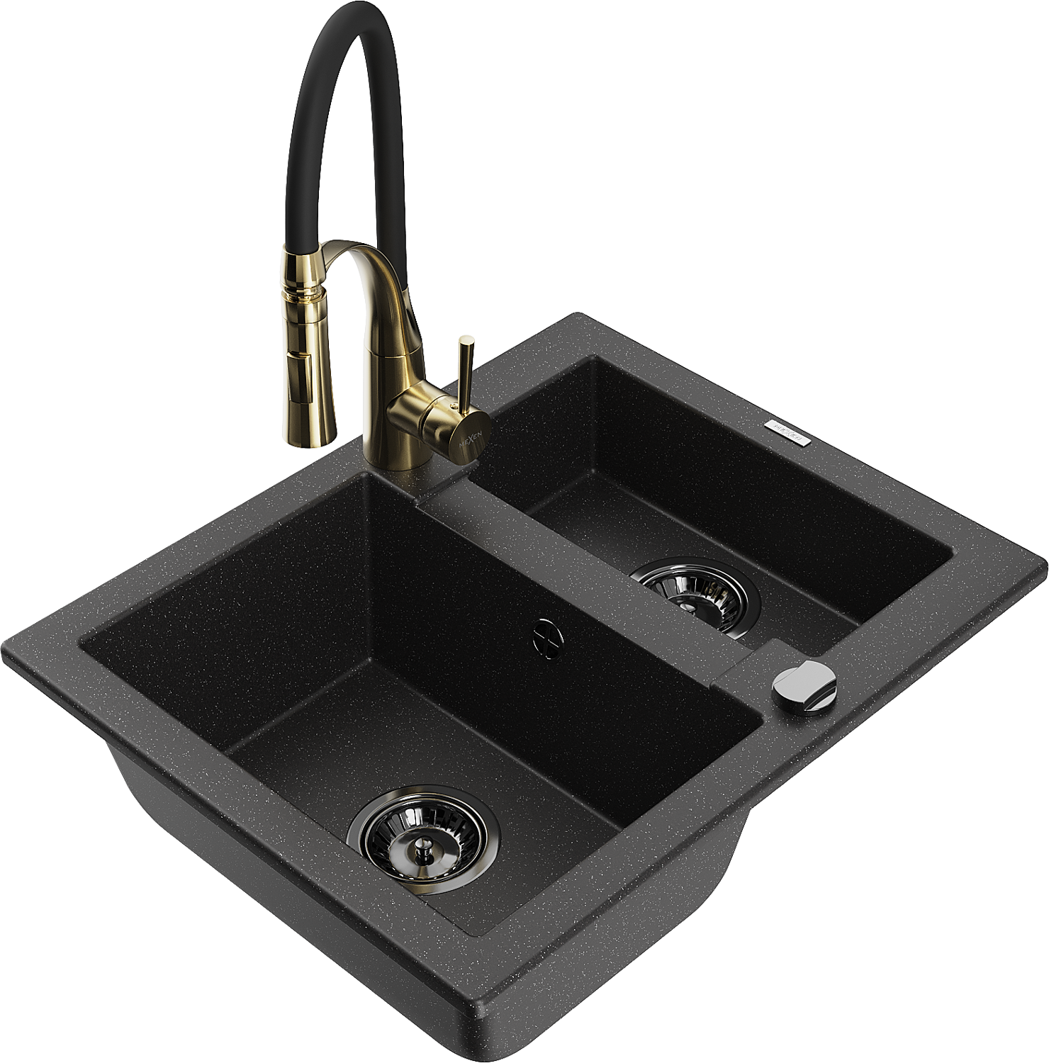 Mexen Carlos chiuvetă de bucătărie din granit cu 1,5 cuve și robinet Aster, negru/argintiu metalizat - 6518-73-73450-57-B